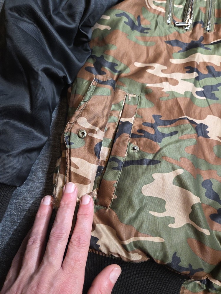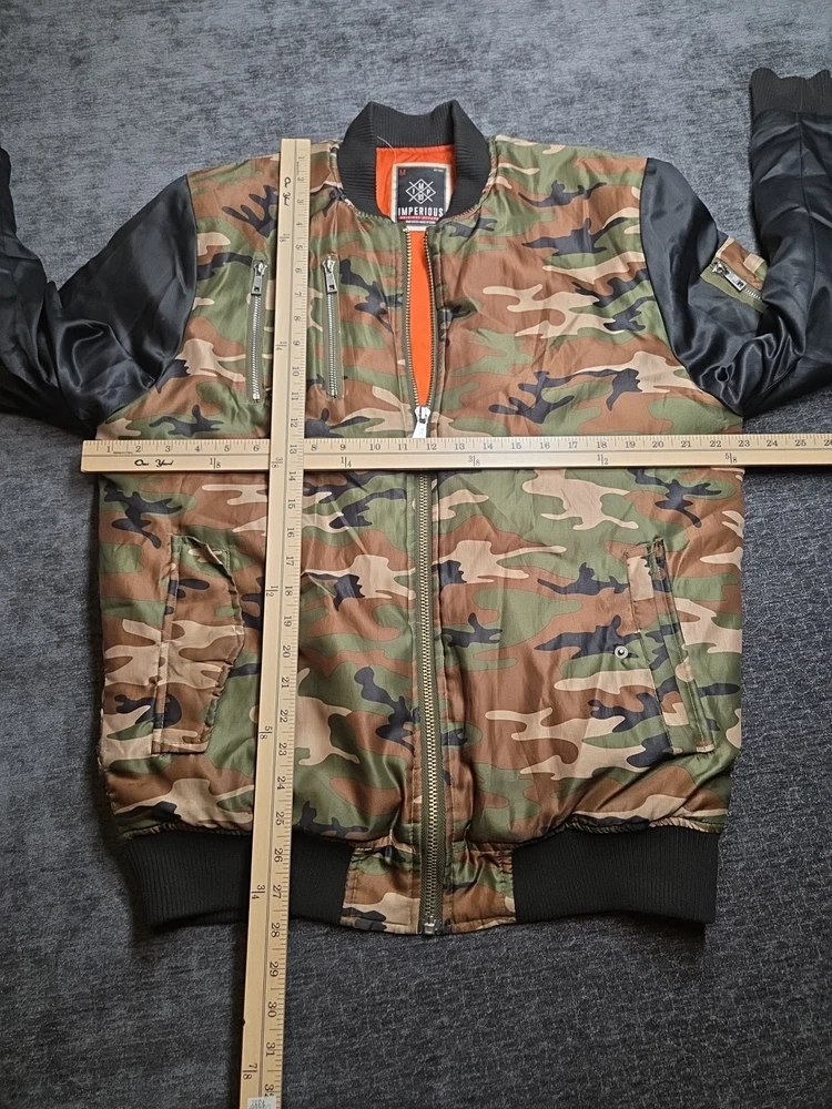 The Men's Imperious Original Apparel Camo Bomber Jacket in size M is a stylish and casual outerwear piece perfect for fall and spring seasons. Made from polyester with a polyester insulation material, this multicolored jacket features a zipper accent and is machine washable for easy care. The bomber jacket style adds a trendy touch to the wardrobe, making it suitable for walking activities. With a regular fit and no vintage design, this jacket from the brand Imperious is a practical and fashionable choice for men. 275