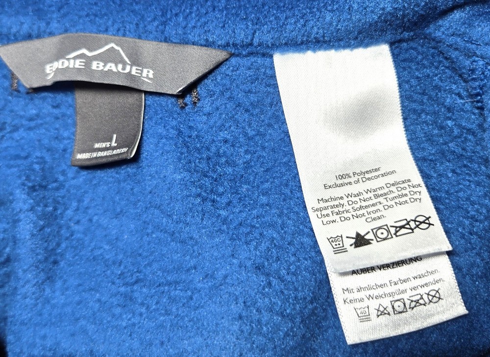 For sale is a very nice Men's Blue, Polyester Fleece, Full Zip Vest by Eddie Bauer in Size Large. (see measurements below. Photos of how we measure are shown after the photos of the item for sale) It is in excellent condition, free from tears, stains, holes, and fading. It also comes from a smoke-free/pet-free home! Measurements (See Photos For Examples) (A.) Pit to pit ~22 inches (B.) Shirt Length ~28 inches (C.) Sleeve Length ~ ____________________________________________________________________________________________________ Why Choose Pepaw's Attic? Our goal is to prove that buying clothing online doesn't have to be a gamble. We are serious about providing the best transaction possible for our customers. Here's why you can trust us: Real Photos: We only provide photos of the exact item you will receive. Honest Descriptions: We aim to provide detailed descriptions of each item, so you know exactly what you are purchasing. Thorough Inspections: We inspect all items for defects and gently wash all articles (unless new) to ensure quality and cleanliness. Fast Shipping: We use only Ground Advantage or Priority Mail, and all orders are processed and in the mail within one business day. We invite you to read our feedback to see the many great things our customers have said about Pepaw's Attic! International Shipping We will gladly ship globally through Ebay's Global Shipping Program. Please follow the checkout process for updated shipping costs. No commitment is required to view your total cost. SKU:T608B