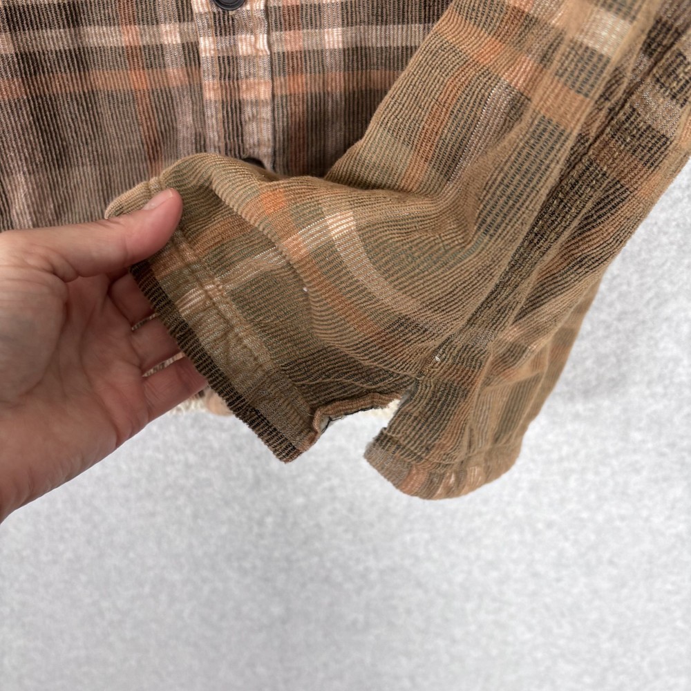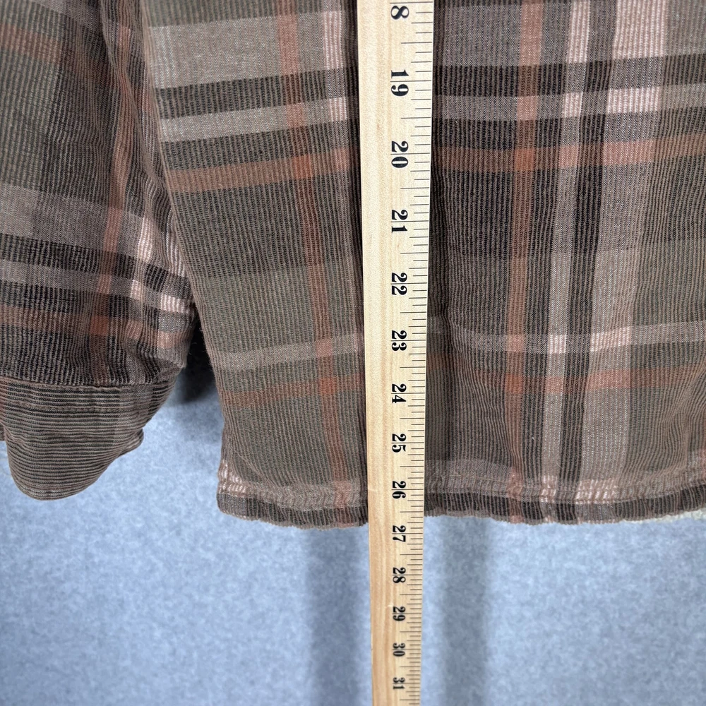 Men's Large Brown Plaid Corduroy Sherpa-Lined Shacket for Warmth by Freedom Foundry