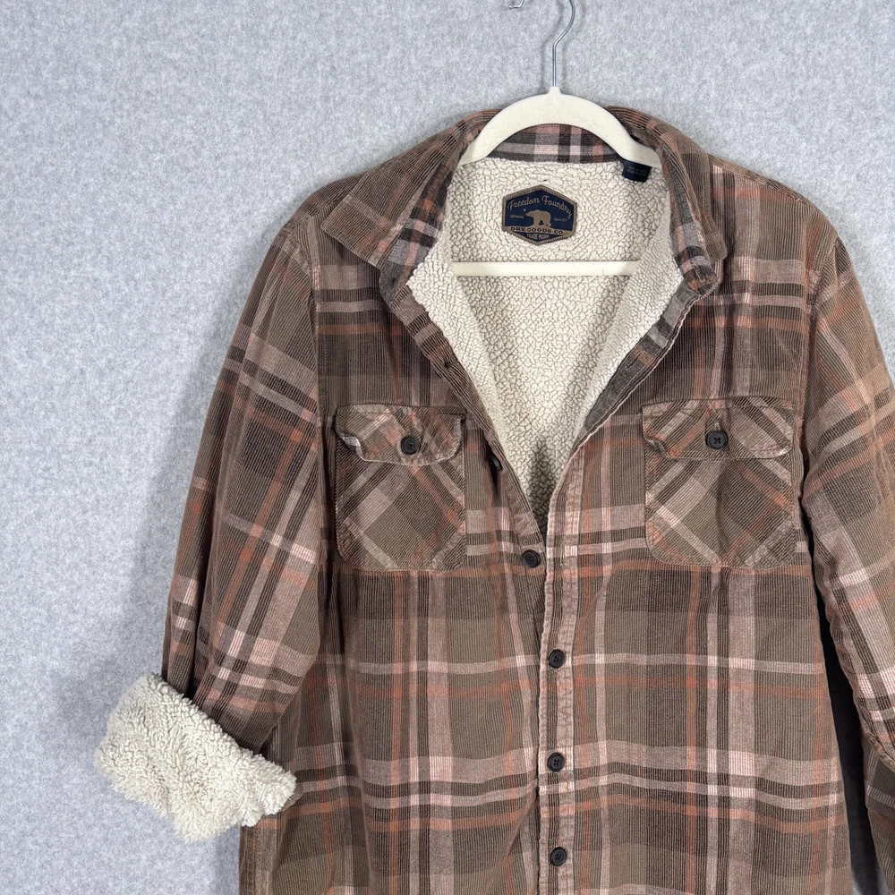 Freedom Foundry Jacket Mens Large Brown Plaid Corduroy Sherpa Lined Shacket Warm Hike Climb Camp GORP Outdoor Work Hunting Western Cowboy EXCELLENT Pre-owned condition: minimal to no signs of wear, no stains or holes SKU 8323 **Please see all pictures for full item condition and details** - Ships Same/Next Day, Professional Seller, Offers Welcome, Like or watch for price drops - Item in photos is exact item you will receive - I list new items daily, be sure to browse my store/closet for more items - Bundle pricing and combined shipping available for additional savings - Feel free to send a message