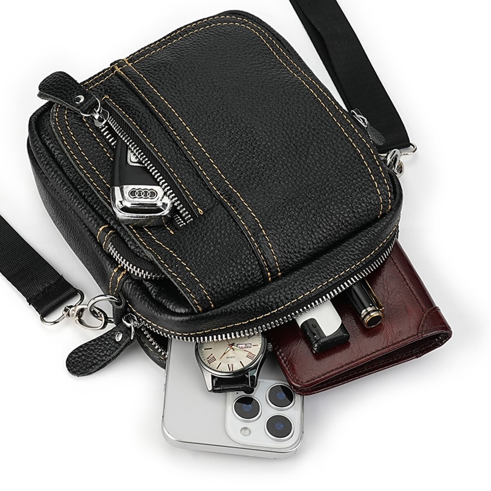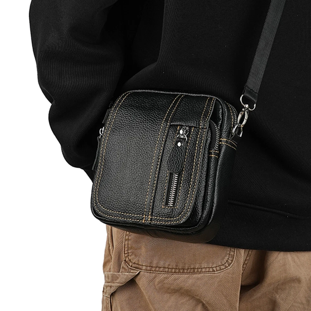 Men's Mini Card Bag Black Leather Bifold Wallet Multi Slot Slim Wallet
