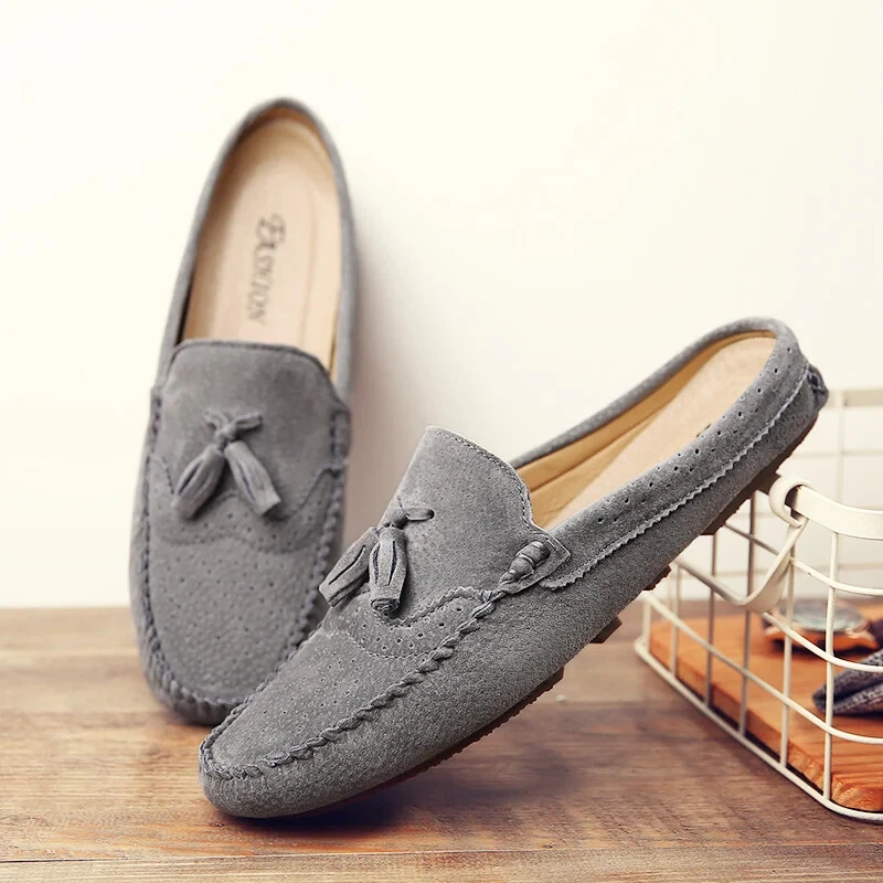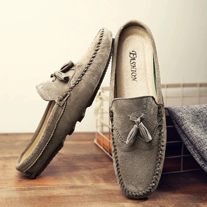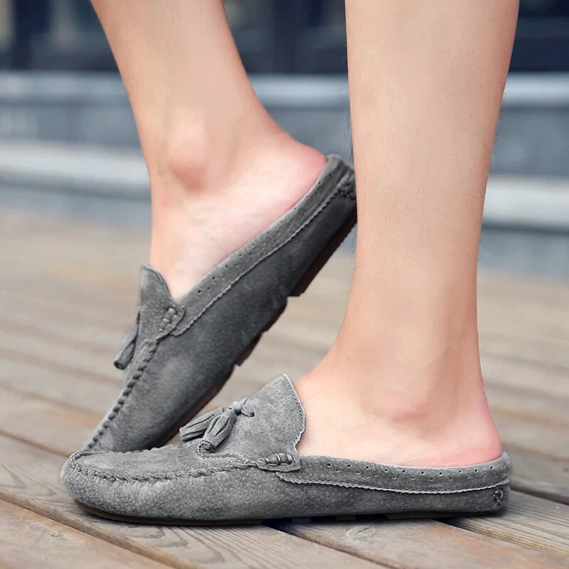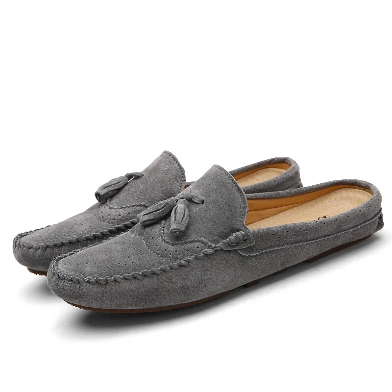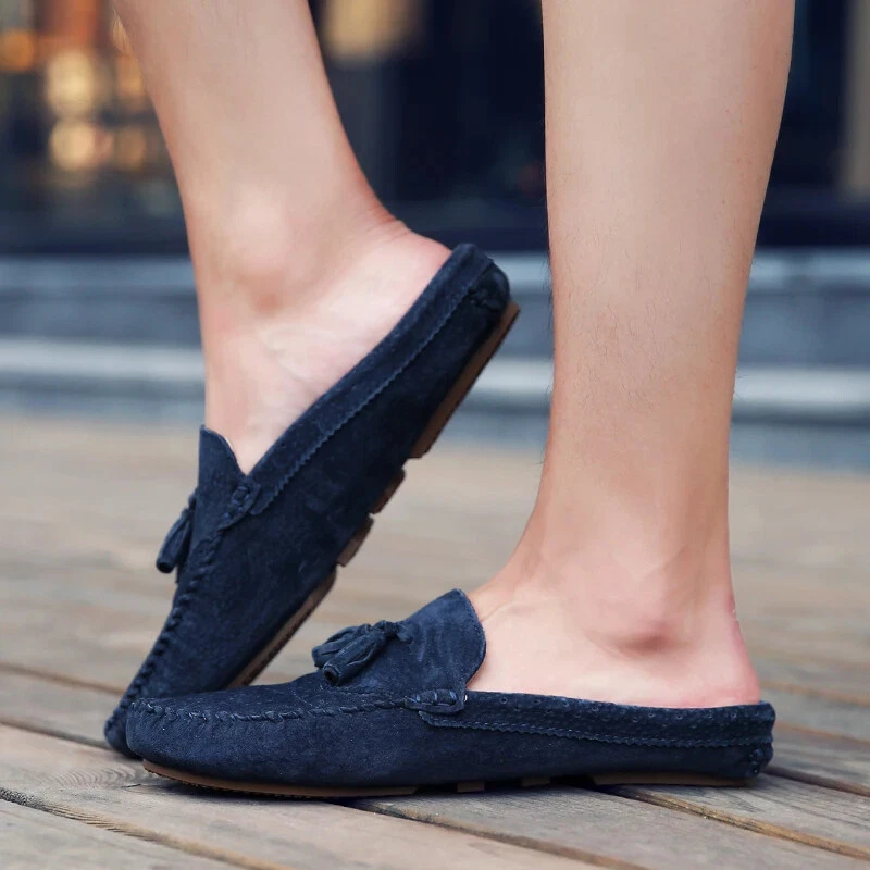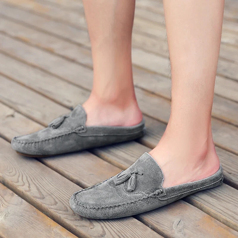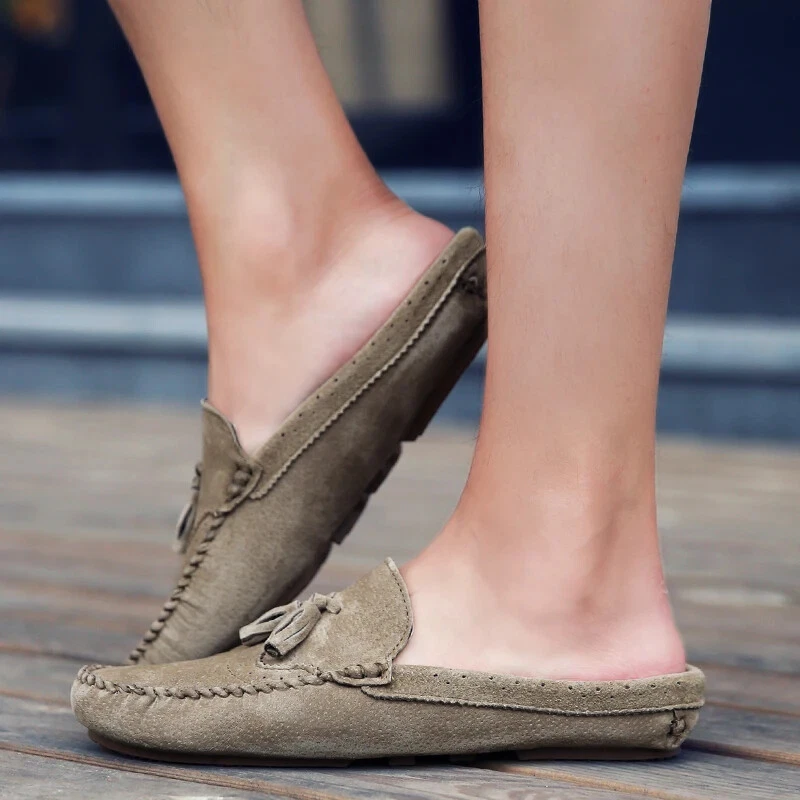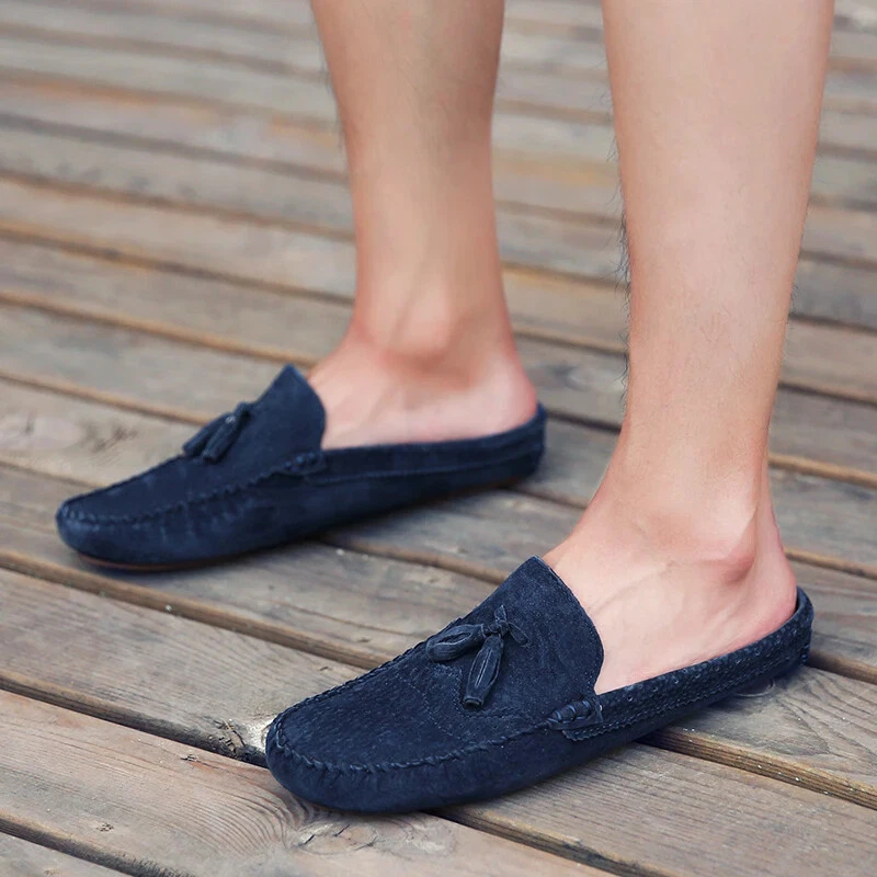 Men's Leather Half Slipper Loafers - Casual Slip-On Boat Shoes