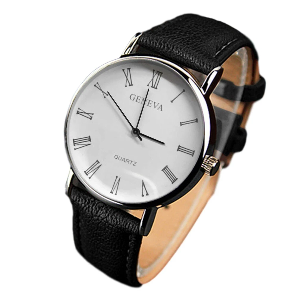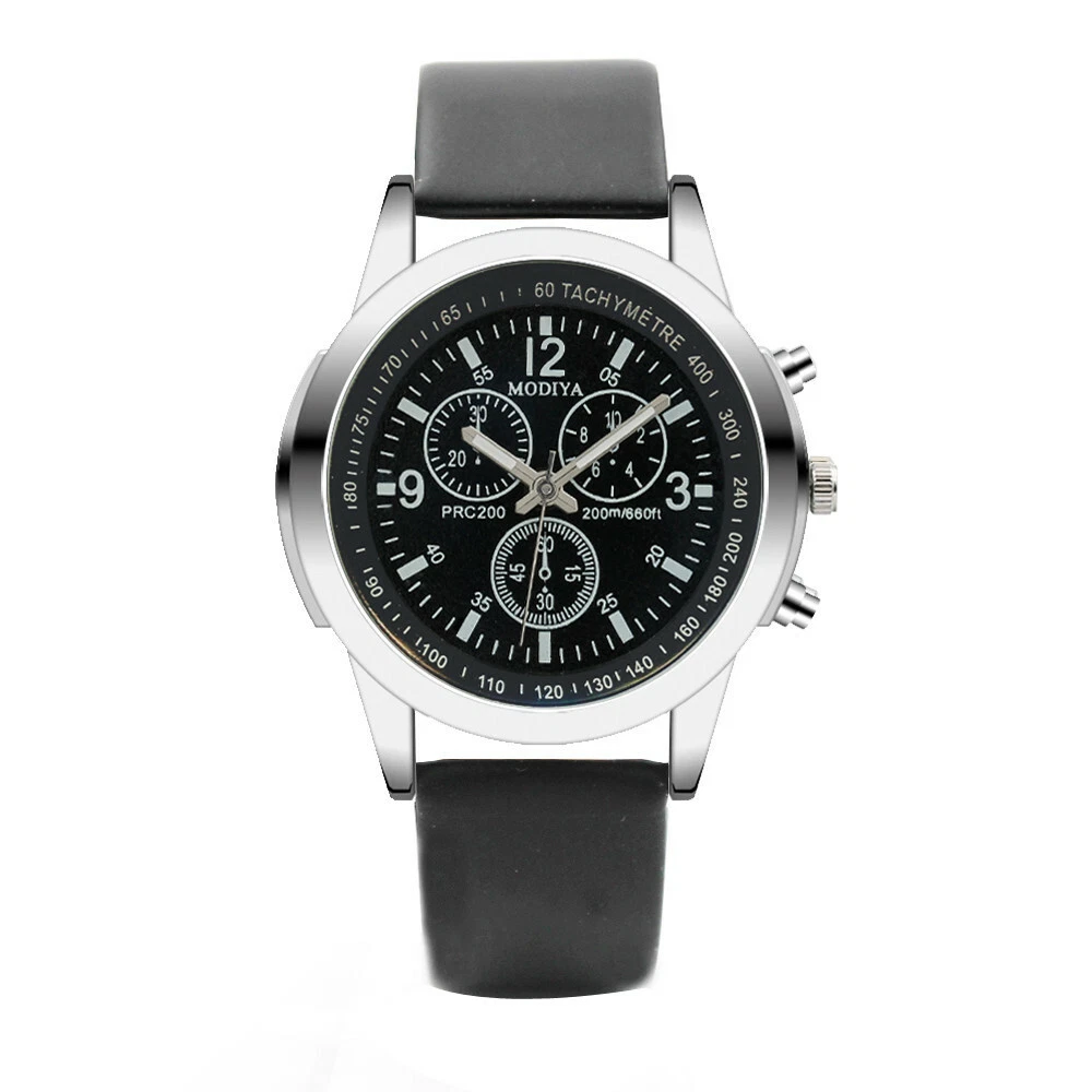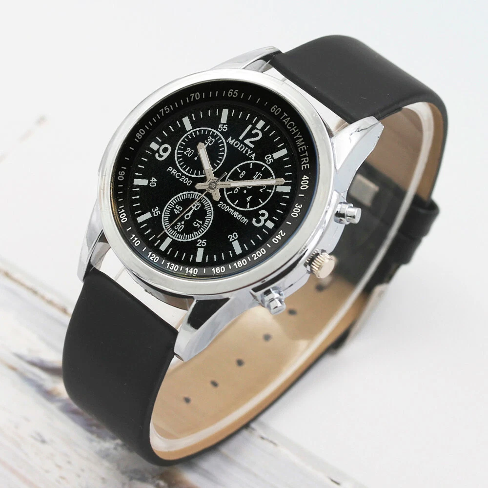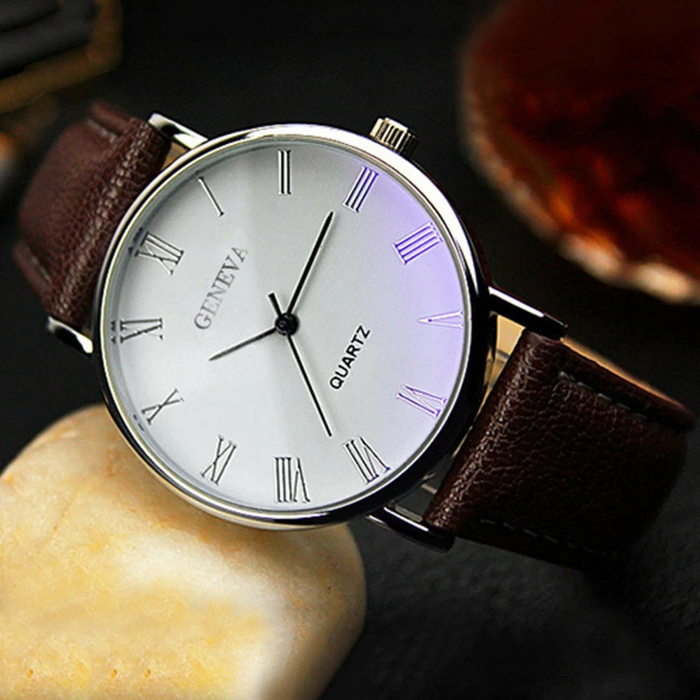 Band Material: Leather Dial Color: Blue,White Movement: Quartz Bezel Color: Silver Features: 12-Hour Dial Brand: Unbranded Case Thickness: 10mm Type: Wristwatch Display: Analog Style: Casual Department: Men Band Color: Black,Brown Closure: Buckle