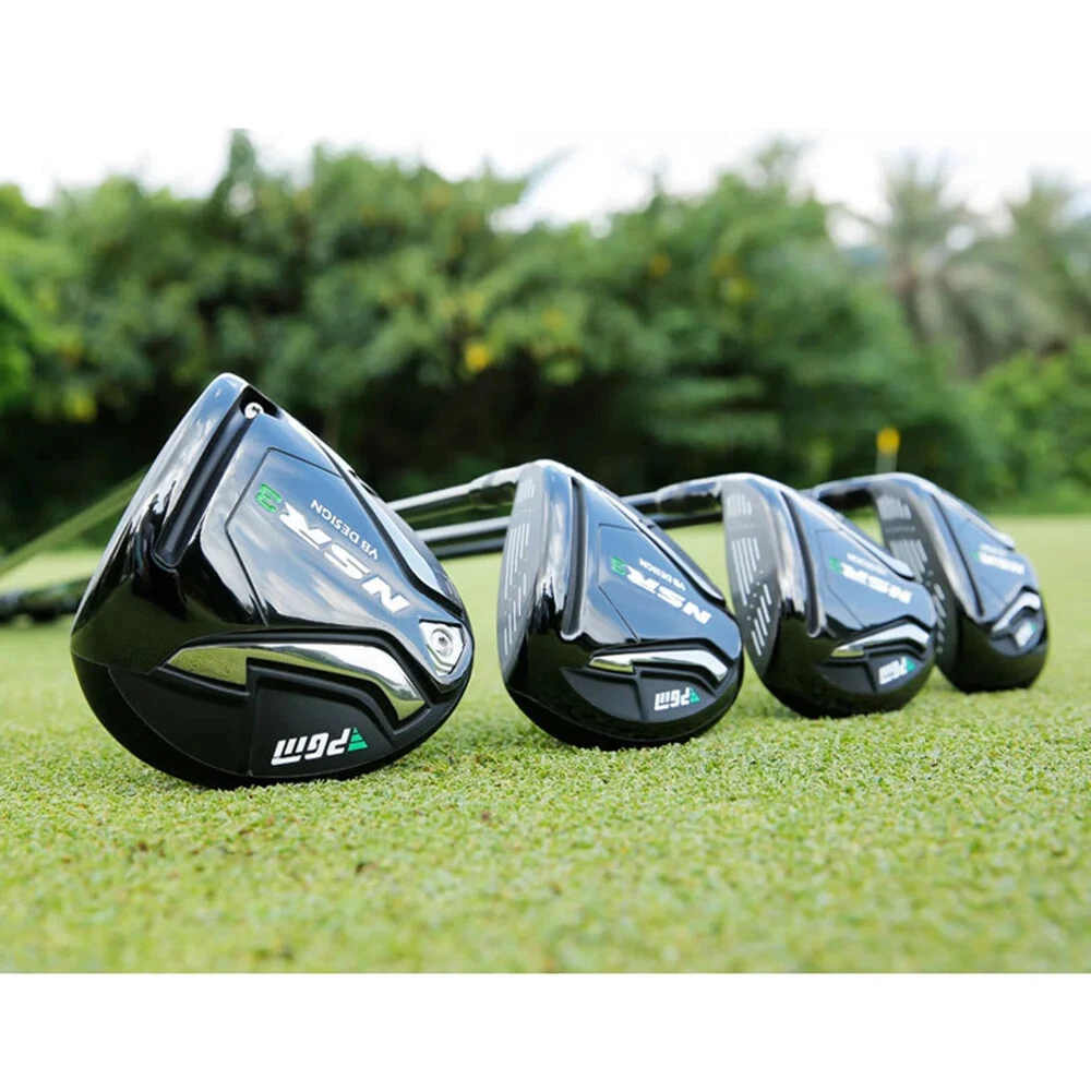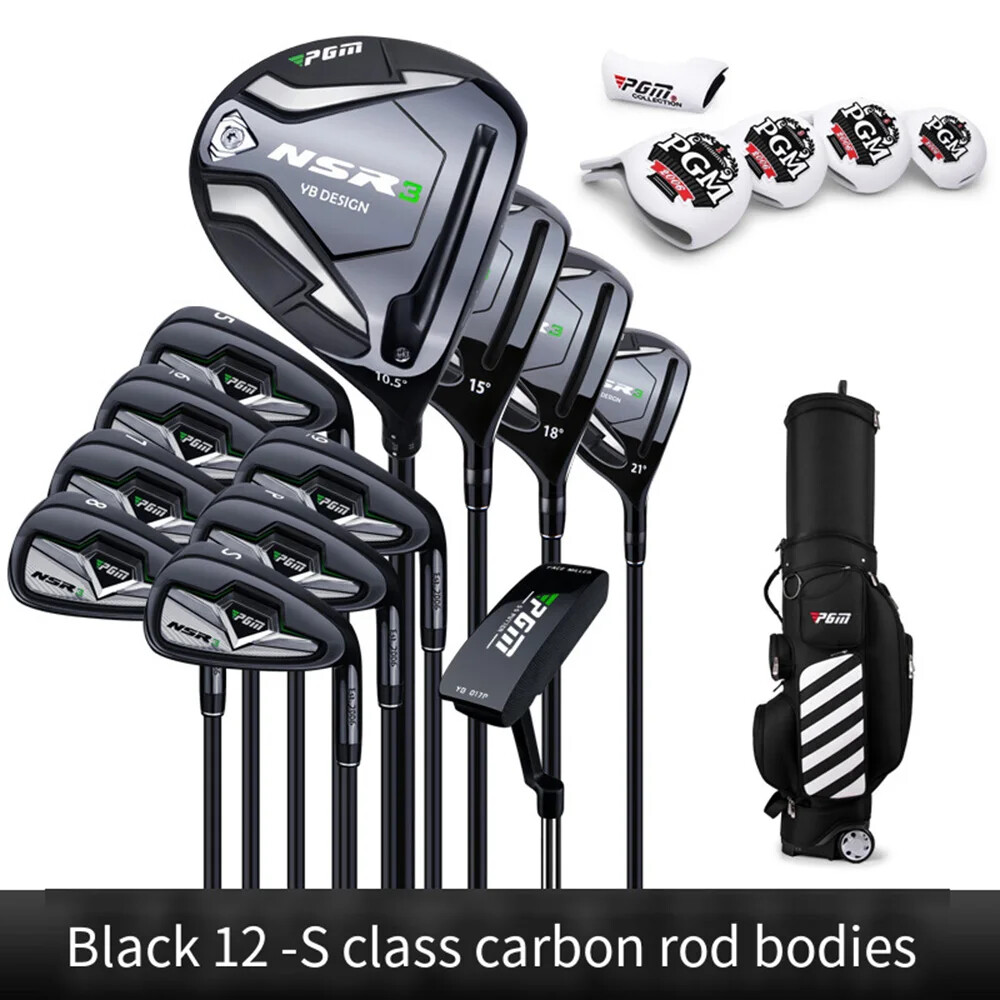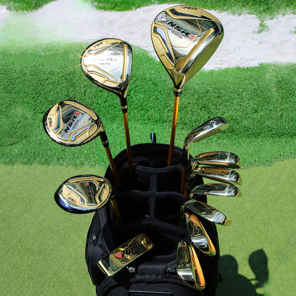 PGM NSR3 12 Piece Men's Left Handed Complete Golf Set Professional Golf Club Graphite Carbon Steel Shaft with Bag Black and Gold Product description Name: NSRright-hand three-generation men's set Ball bag: telescopic ball bag Color: gold, black Shaft: carbon shaft Head material: 3 woods + 7 irons + 1 putter + 1 iron wood + ball bag (12 + ball bag in total) Weight: GW: 13kg±1kg Product Features 1. The driver has an adjustable LOFT angle and can be replaced. Adjust the club head angle to suit your needs. 2.50g shaft is all carbon, light and stable, soft and accurate, making it easy for you to get started and hit the ball farther. 3. The driver adopts 8-1-1-1 cast titanium, 0.86 high rebound 4.3-generation club head has a lower center of gravity, resulting in a higher launch angle and lower spin at the moment of the swing.The driver has been extended by 0.5 inches on the basis of the original, and the longer shaft can increase the distance of the ball. Packing list 3*wood pole 7* Hardcore 1*Putter 1* Ironwood, ball bag