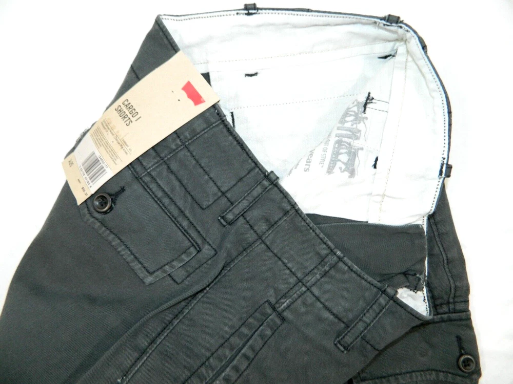 New with Tags pair of Levi Strauss Brand Smoky Gray Cargo Chino Shorts. Tag Size: 29. 100% Cotton. Waist: 29, Inseam: 10.5, Front Rise: 11, Leg Opening: 9.5. Store shelf condition. No issues. BWOA11