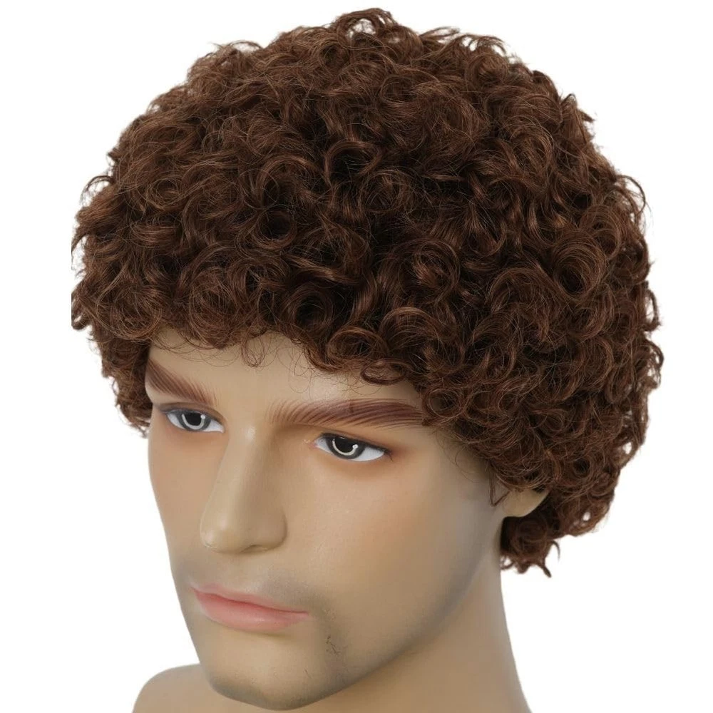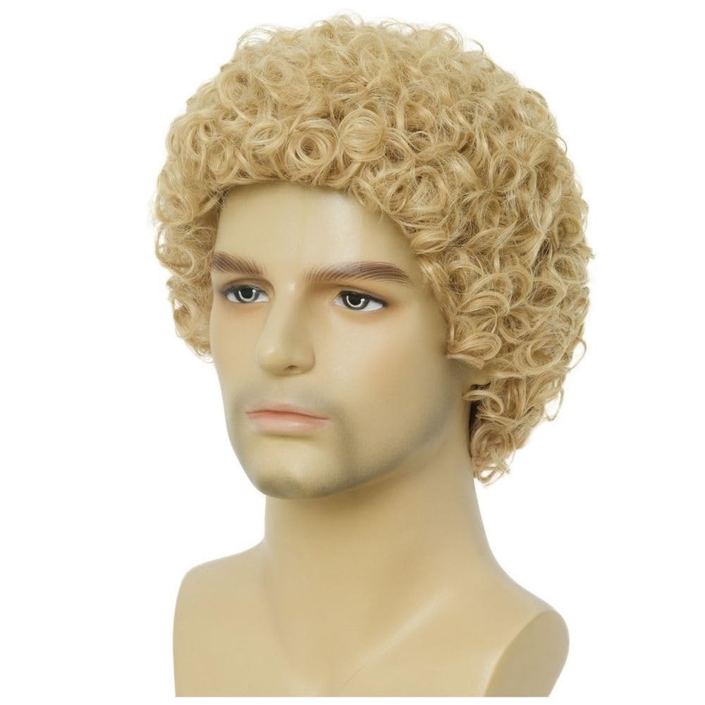 About this wig: Mens light blonde afro wig, imported heat resistant synthetic fiber, which is soft durable and charming. Color: Short blond curly wig.Looks realistic and natural perfect for carnivals,theme parties,halloween and daily use. Size: The wig cap is adjustable(21-23inch),can be intertwined to suit different head sizes. Hair Care: Just need a little mild shampoo and hair conditioner then washing in warm water. Packaged Included : 1 x wig + 1 x free wig cap.