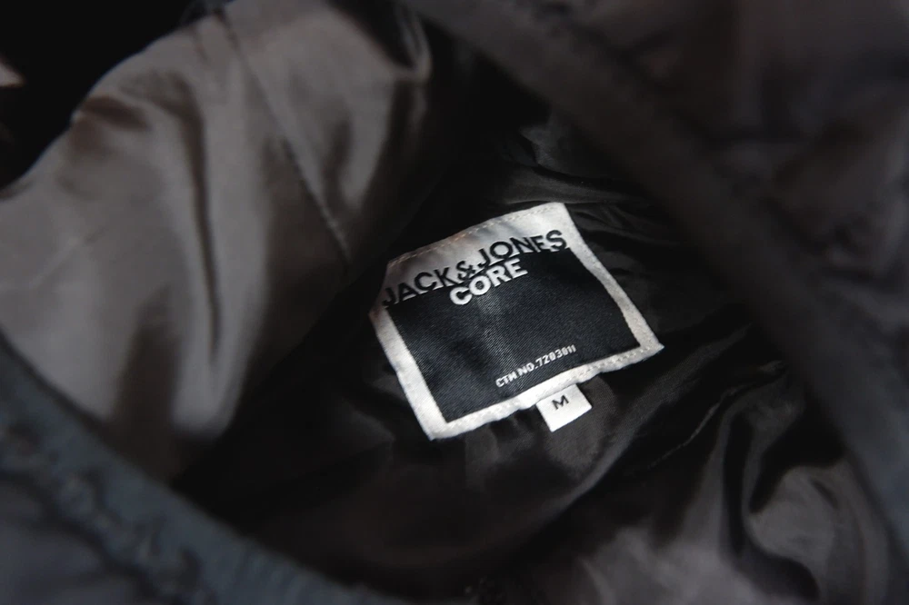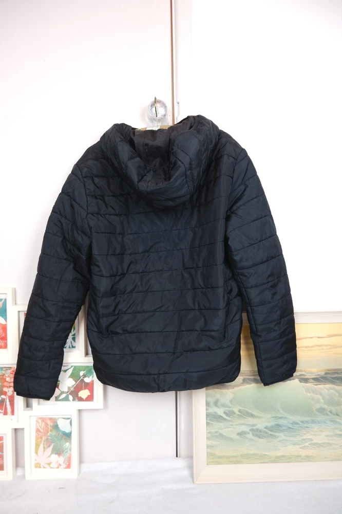 Men’s Lightweight Puffer Jacket Black Pockets padded coat hood Jack and Jones medium Very good condition Jack&Jones Size M