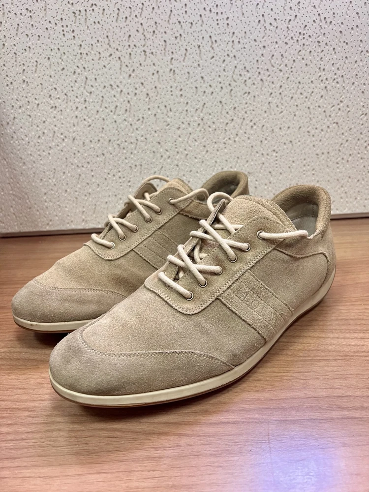 This is a pair of men's Loewe suede leather low top sneakers in a size 42 EU, which is equivalent to a US size 9 and UK size 8. The sneakers feature a stylish polka dot pattern in gray, with a lace-up closure and a comfortable leather lining and insole. Made in Italy, these designer sneakers have a rubber outsole for traction and are suitable for casual occasions and walking activities. The Loewe branding and logo add a touch of luxury to these athletic shoes. As used items, these shoes show signs of wear consistent with their age (stains…) Please refer to the photos for a detailed view of the shoes condition. Advantages of buying used clothes: * Affordability - Enjoy quality clothing at budget-friendly prices. * Unique Style - Discover one-of-a-kind fashion pieces. * Sustainability - Support eco-friendly practices by extending garment lifecycles. * Quality and Durability - Find durable vintage pieces with superior craftsmanship. * Timeless Fashion - Embrace classic styles that stand the test of time. * Rare Finds - Uncover exclusive and discontinued items. * Creativity - Experiment and express your style creatively." **Shipping Policy:** Shipping: We offer [standard shipping ] shipping takes less than two or three weeks. Handling Time: We strive to ship items within [2] business days after receiving cleared payment. International Buyers: Please note that import duties, taxes, and charges are not included in the item price or shipping cost. These charges are the buyer's responsibility. Please check with your country's customs office to determine what these additional costs will be prior to purchasing. **Returns and Exchange Policy:** Returns: We accept returns within [30] days of delivery. The item must be returned in the same condition as received, and the buyer is responsible for return shipping costs. Exchanges: Unfortunately, we do not offer exchanges at this time. **Thank You:** Thank you for your visit ! If you have any further questions or need additional information, please don't hesitate to contact us. We appreciate your interest and hope you enjoy your purchase.