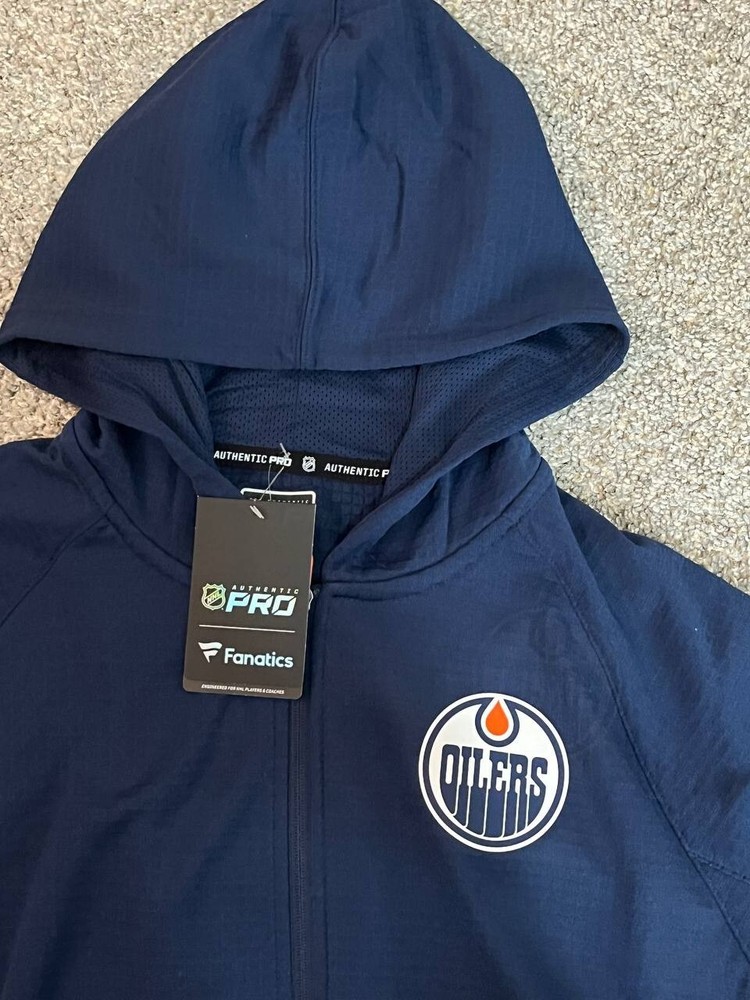 Mens M Edmonton Oilers Authentic pro rink full zip jacket hoodie NWT Blue