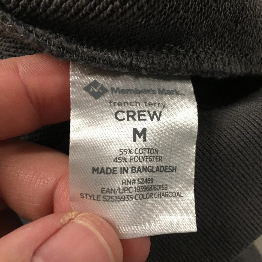 Season: Fall, Spring, Summer, Winter Style: Pullover Fit: Regular Vintage: No Size: M Department: Men Personalize: No Garment Care: Machine Washable Country/Region of Manufacture: Bangladesh Closure: Pullover Theme: Classic Color: Gray Material: Cotton Blend Features: All Seasons, Breathable Pattern: Solid Performance/Activity: Walking Seller Notes: “Great condition. Yes, There are flaws. See the photos!” MPN: NA Sleeve Length: Long Sleeve Neckline: Crew Neck Type: Sweatshirt Size Type: Regular Brand: Member's Mark