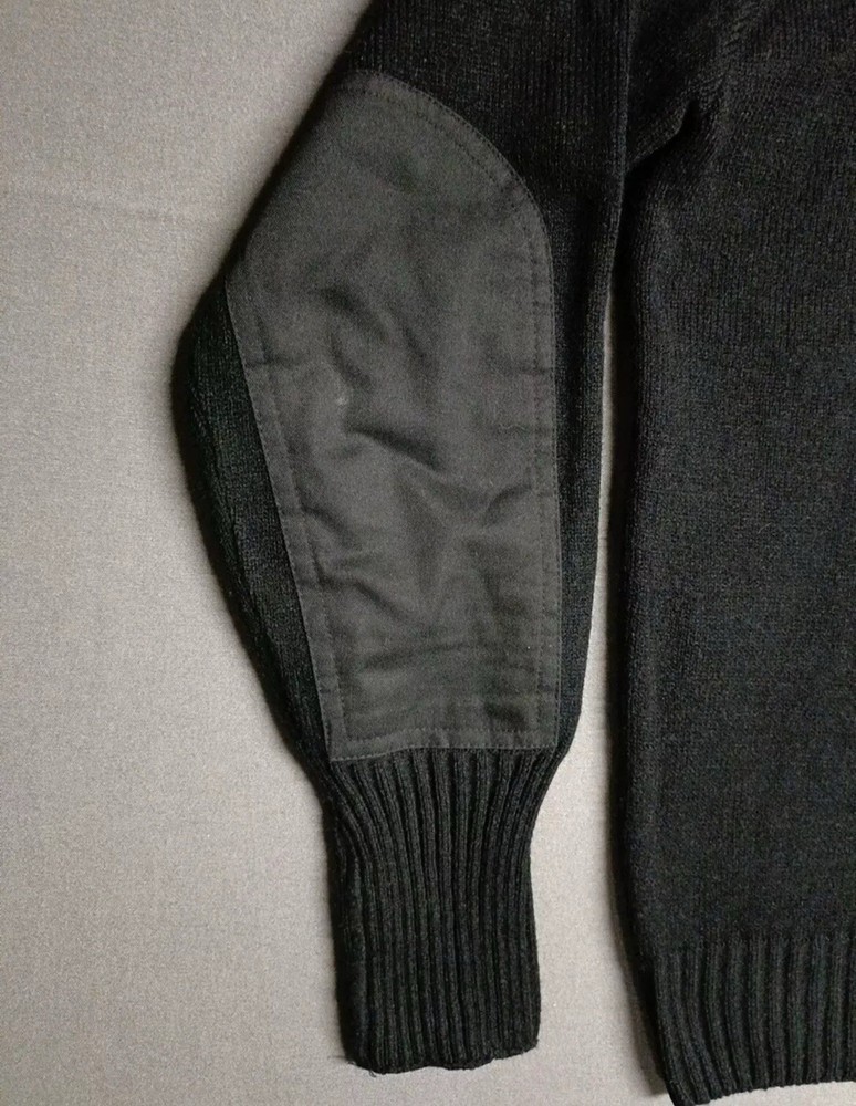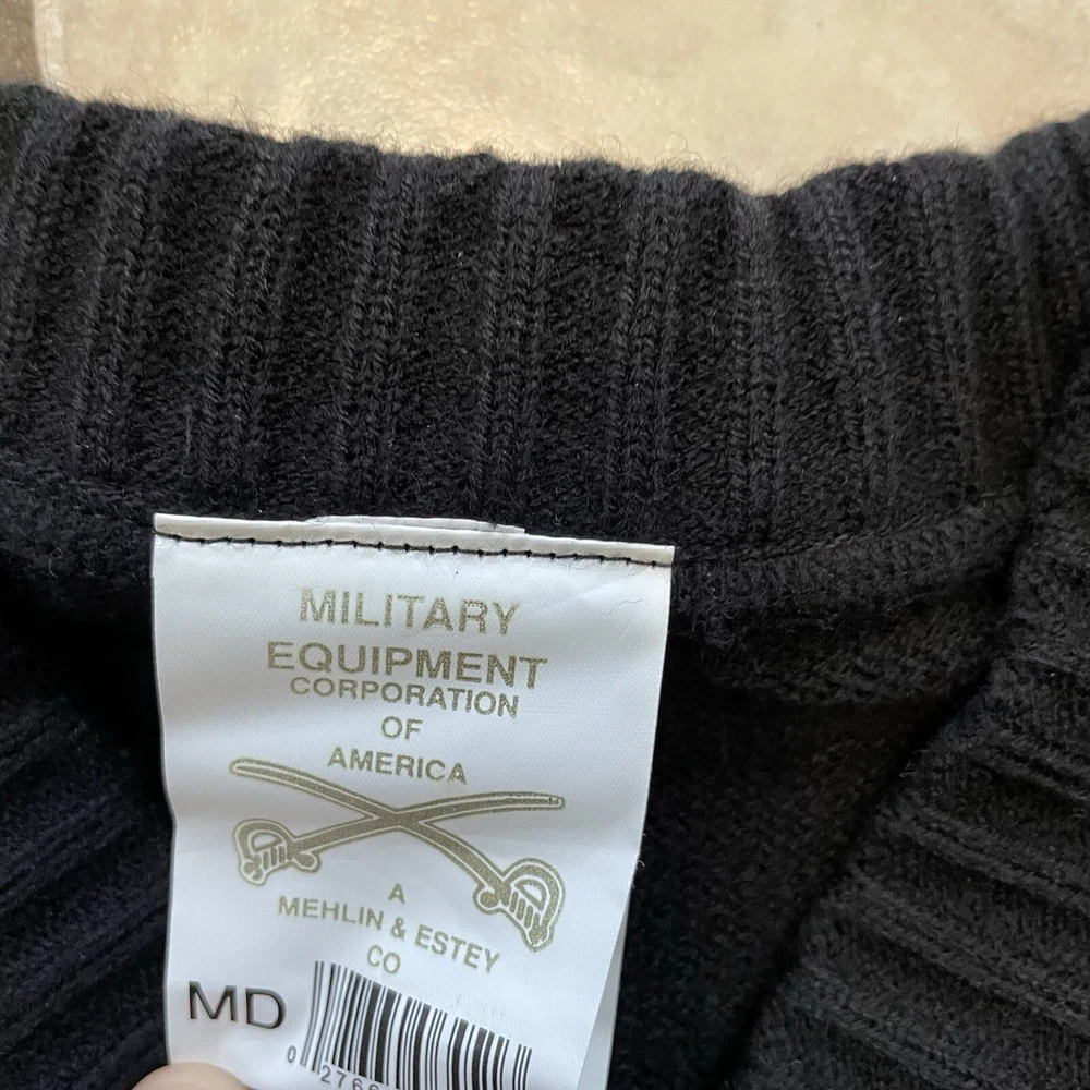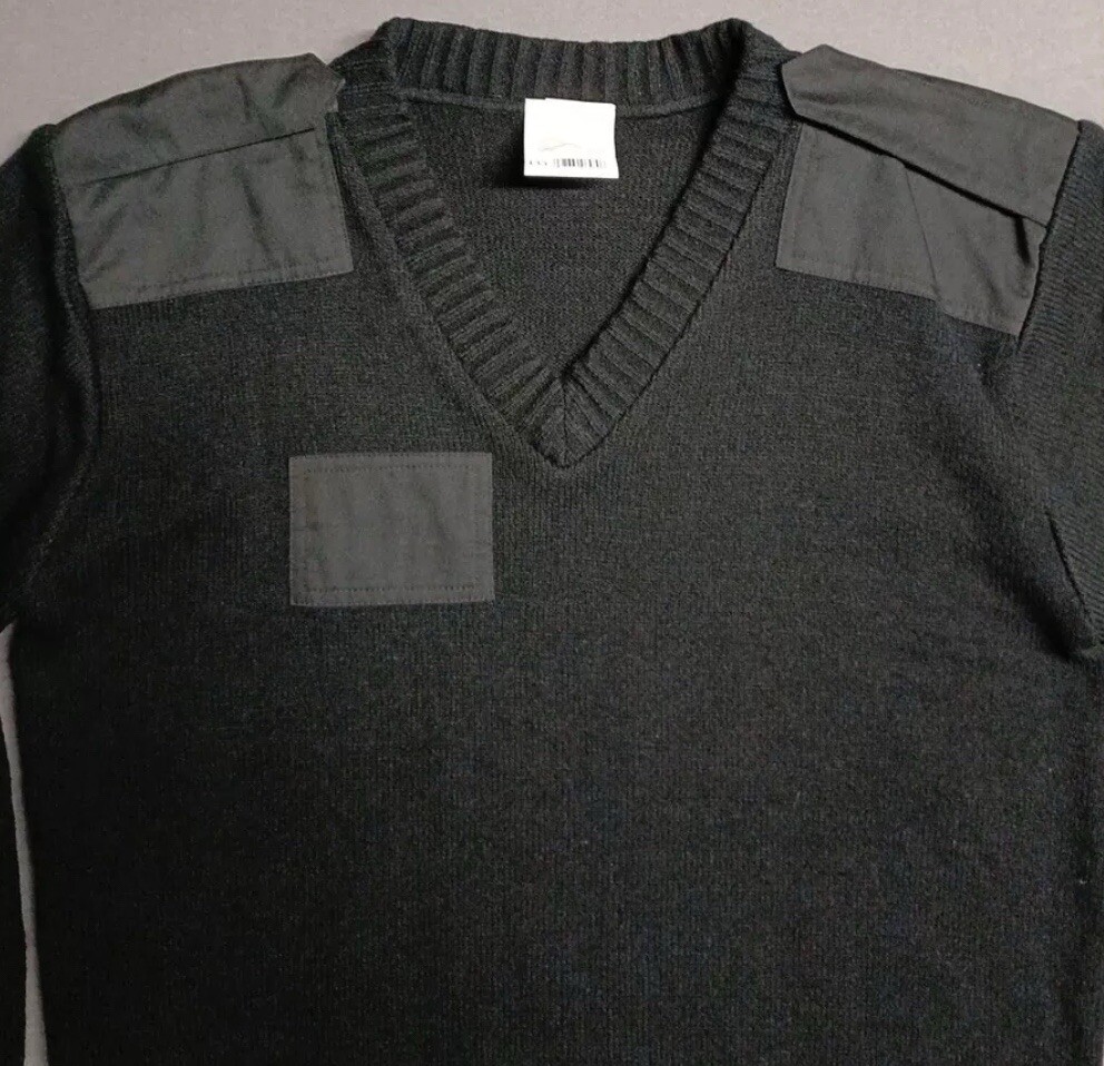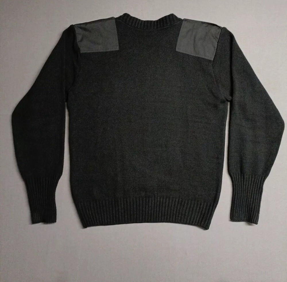 Country/Region of Manufacture: United Kingdom Color: Black Fabric Type: Knit Neckline: V-Neck Brand: Military Equipment Corporation Of America Features: Acrylic, Elbow Patch, Shoulder Patch Size: M Size Type: Regular Style: Pullover Material: Cotton, Polyester Type: Sweater Department: Men Theme: Hipster, Hip Hop, Motorcycle, Rock, Retro, 80s, 90s, Army, Biker
