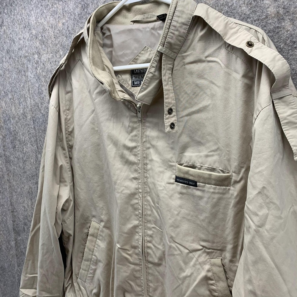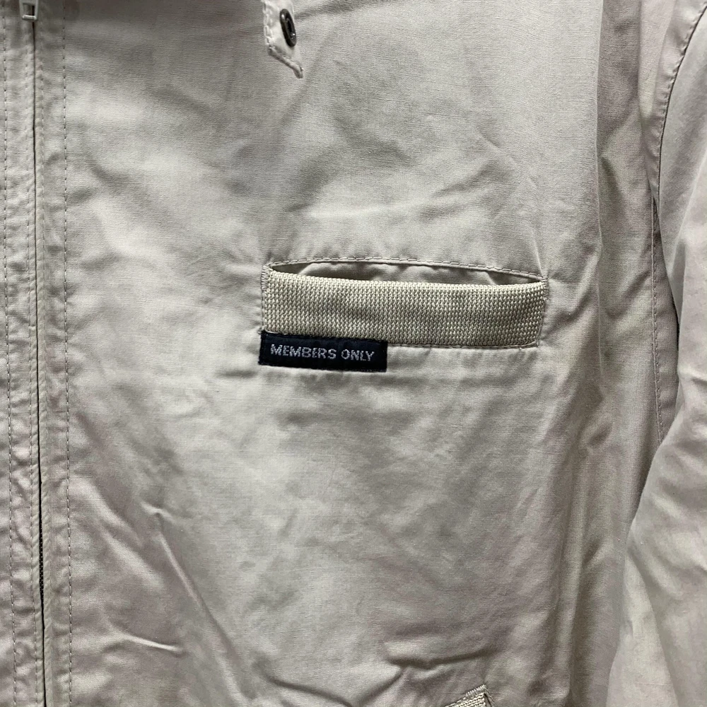 Color: Beige Theme: Outdoor Accents: Logo Outer Shell Material: Polyester Style: Windbreaker Size: 46 Vintage: No Country/Region of Manufacture: Thailand Seller Notes: “Very Good Pre-owned condition. Check Bellow for detailed description & photos” Department: Men Size Type: Regular Type: Jacket Pattern: Solid Occasion: Business, Casual, Formal, Party/Cocktail, Travel, Workwear Fit: Regular Season: Fall, Spring, Summer, Winter Garment Care: Machine Washable Brand: Members Only Personalize: No Features: Pockets