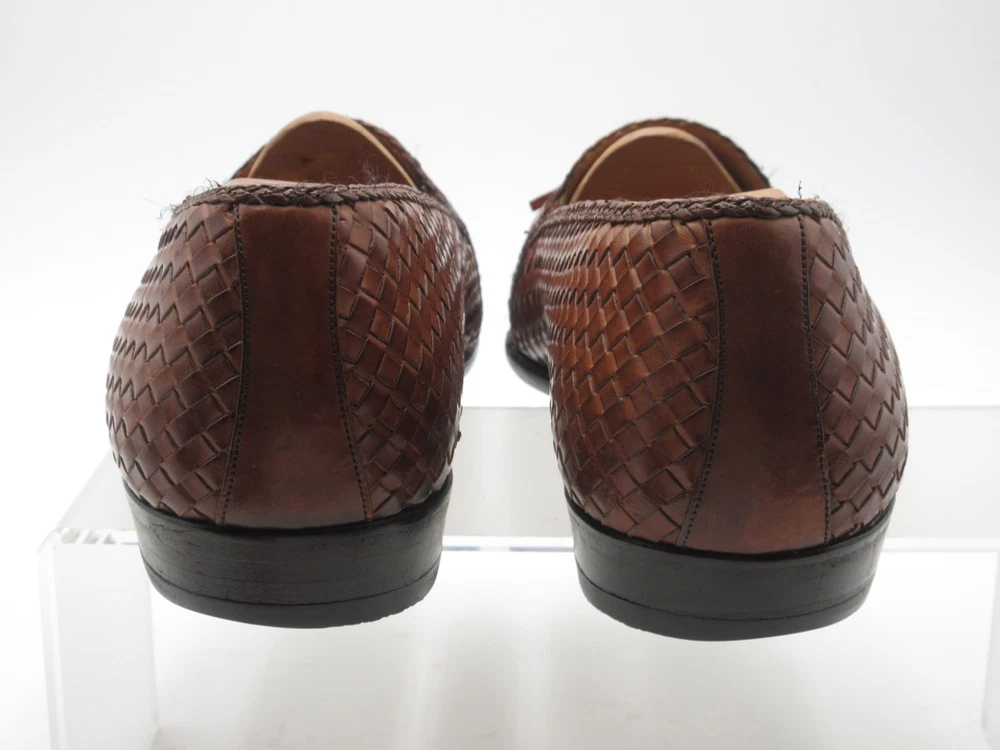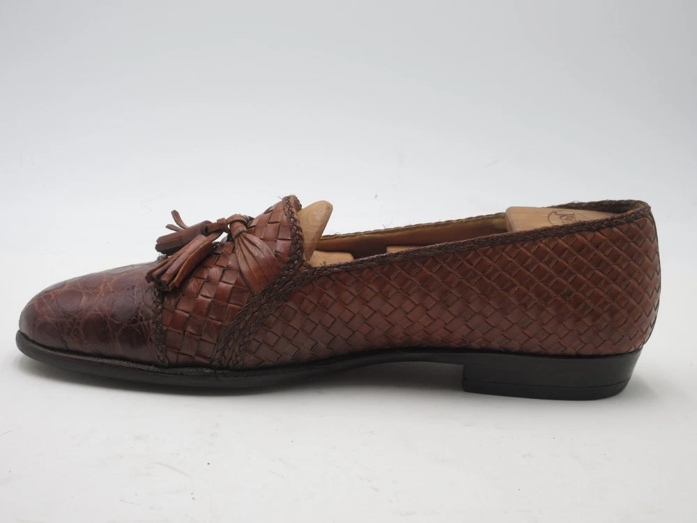Men's pre-owned, brown woven g enuine crocodile skin & calf uppers, apron toe tasseled loafers by Mezlan Trinidad in size 10 M. Made in Spain. In good used condition. The outer sole measurements are; 11 7/16 " long & 3 15/16 " wide. Please email me your questions. The shoe trees are not included. BUYERS WITH FEEDBACK SCORE OF LESS THAN 10 ARE REQUIRED TO PAY IMMEDIATELY. COMBINED SHIPPING AVAILABLE LOW BALL BIDDERS WILL BE BLOCKED FROM FUTURE LISTINGS <div style="text-align:center"><a style="text-decoration:none" href="http://mostpopular.sellathon.com/?id=AC1350830"><img src="http://www.sellathon.com/Resources/Images/countercredit.gif" border="0"></a></div>