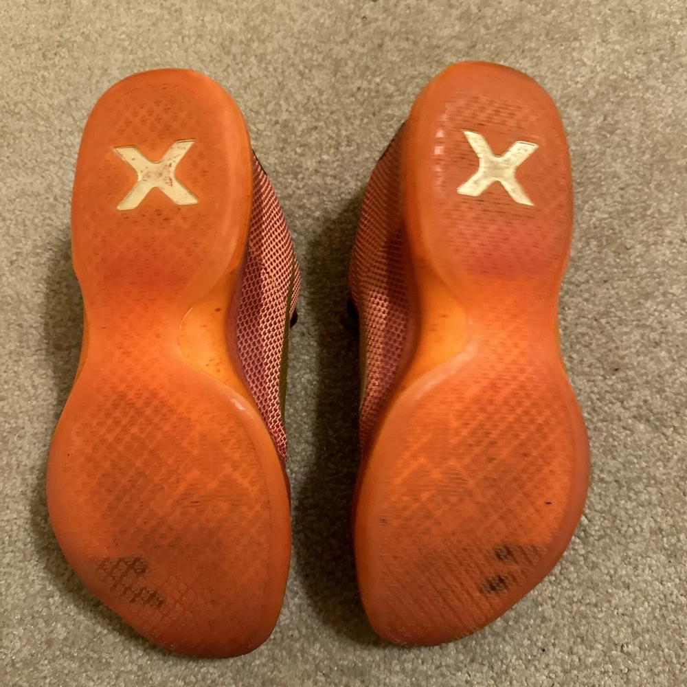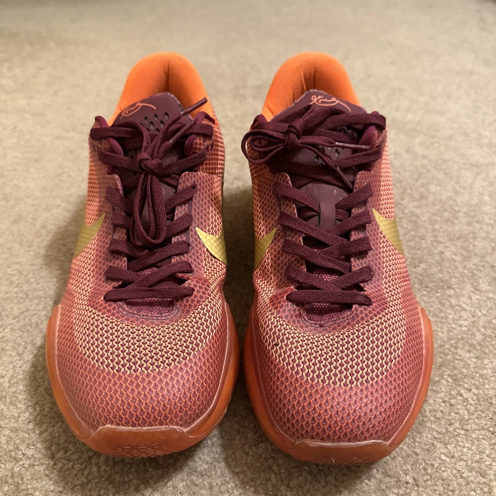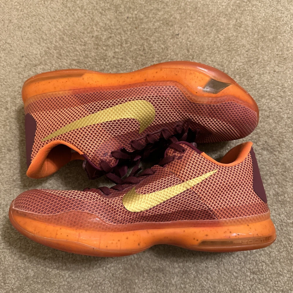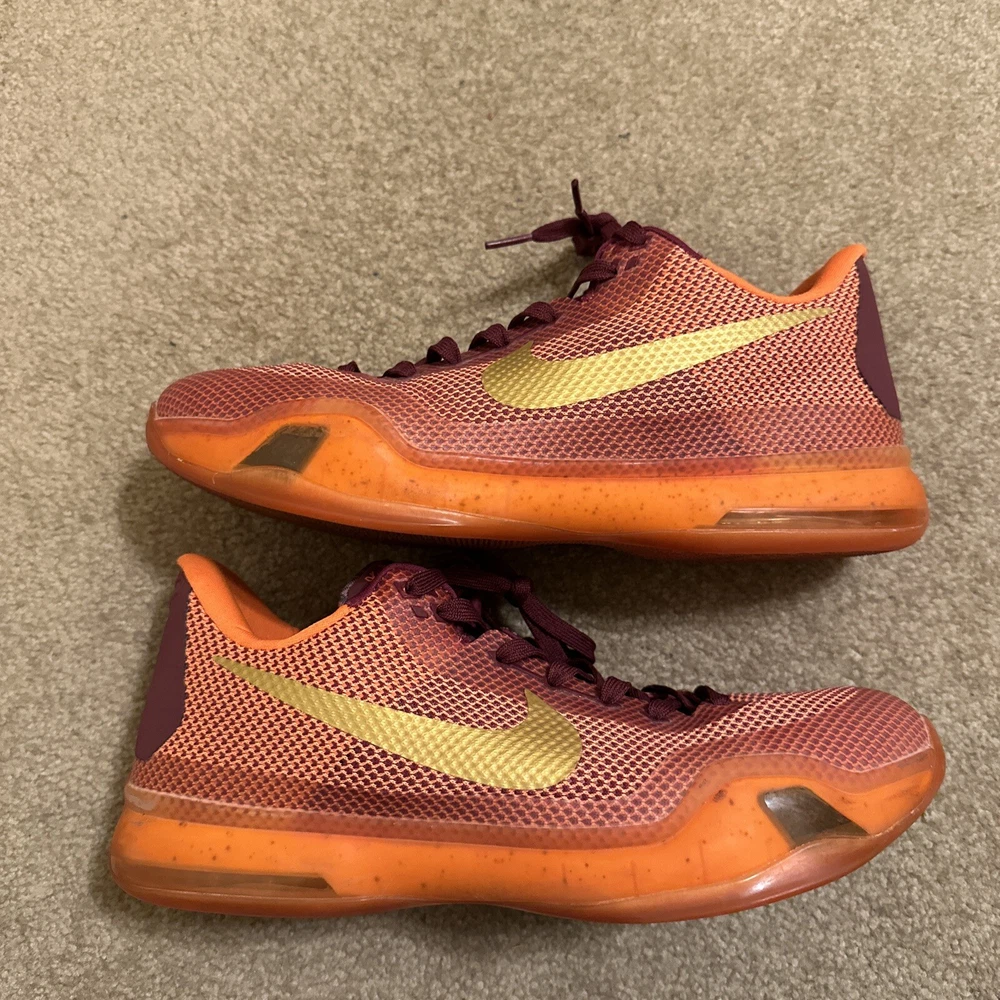 THESE SHOES DO NOT COME WITH INSOLES. Elevate your basketball game with these Men's Nike Kobe 10 Silk Road Basketball Shoes in Size 11. These pre-owned sneakers are perfect for any athletic activity, with a comfortable and stylish design that includes a silk upper material. The orange color and Nike branding make these shoes a must-have for any sneaker enthusiast. The Nike Kobe 10 model is part of the Nike Kobe product line, and is perfect for men who want to add a touch of elegance to their athletic wear. These shoes are suitable for basketball, with a performance-enhancing design that ensures you get the best out of your game. Don't miss out on these stylish and functional sneakers.
