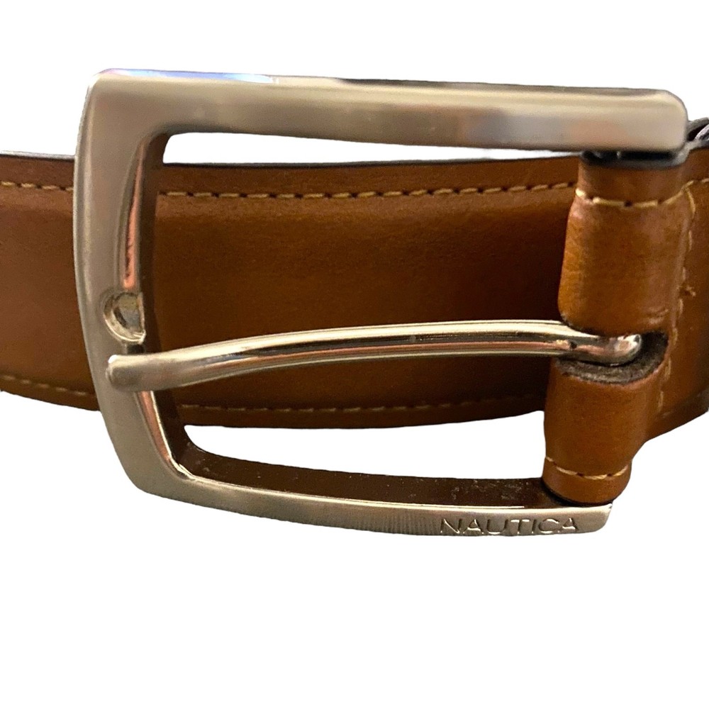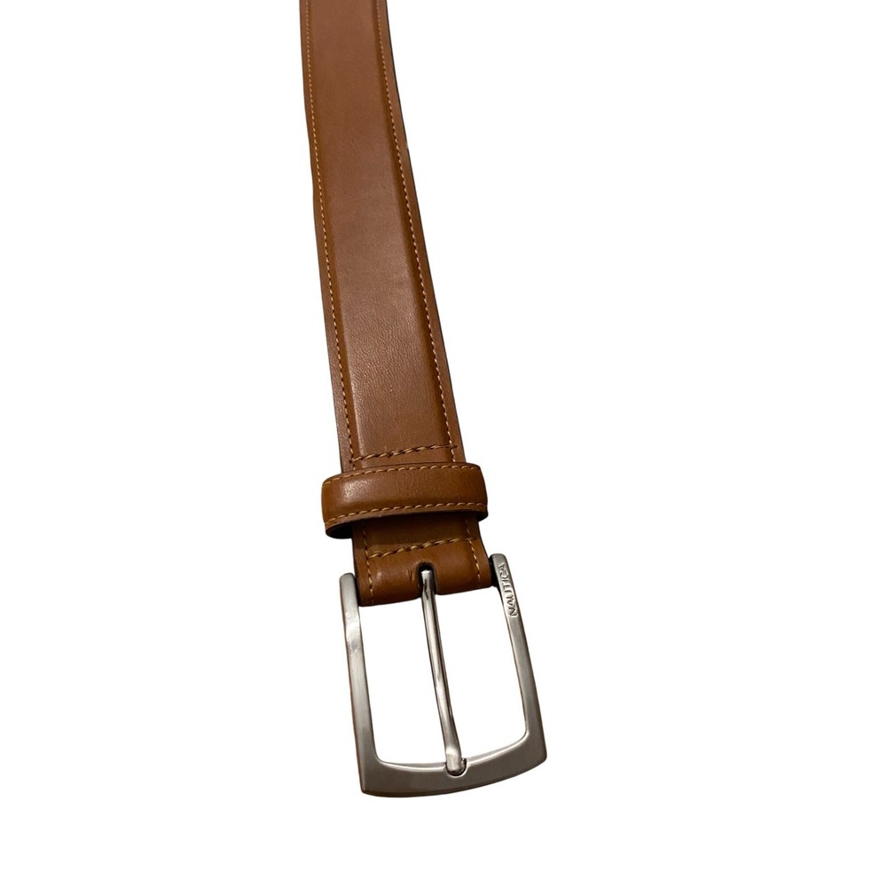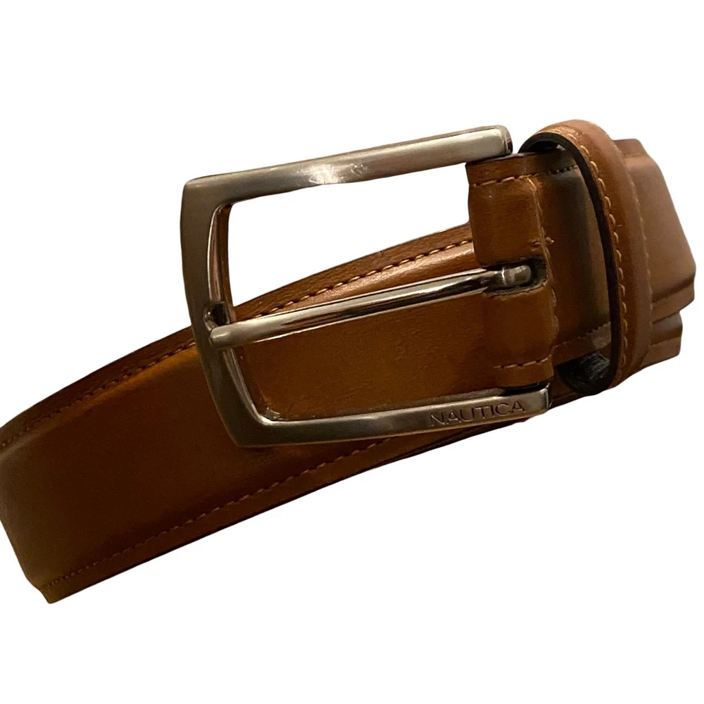 This pre-owned belt is in excellent condition, ready to add a touch of classic Nautica style to your wardrobe. Don't miss out on this great find to complete your ensemble! This pre-owned belt is in excellent condition, ready to add a touch of classic Nautica style to your wardrobe. Don't miss out on this great find to complete your ensemble! It features a sleek silver-tone buckle that beautifully complements the light brown, making it a versatile accessory for any outfit. Perfect for jeans, chinos, or dress pants, it provides a comfortable and secure fit for waist sizes 34-36. Color in pics may vary due to lighting and/or monitor settings SHOP POLICIES * All items ship within 1-3 business days (I always try to ship by next business day) * This item is used/pre-loved * Any defects (if any) are noted and shown in the photos * All sales are final * Please review the description/pictures and ask questions before purchasing