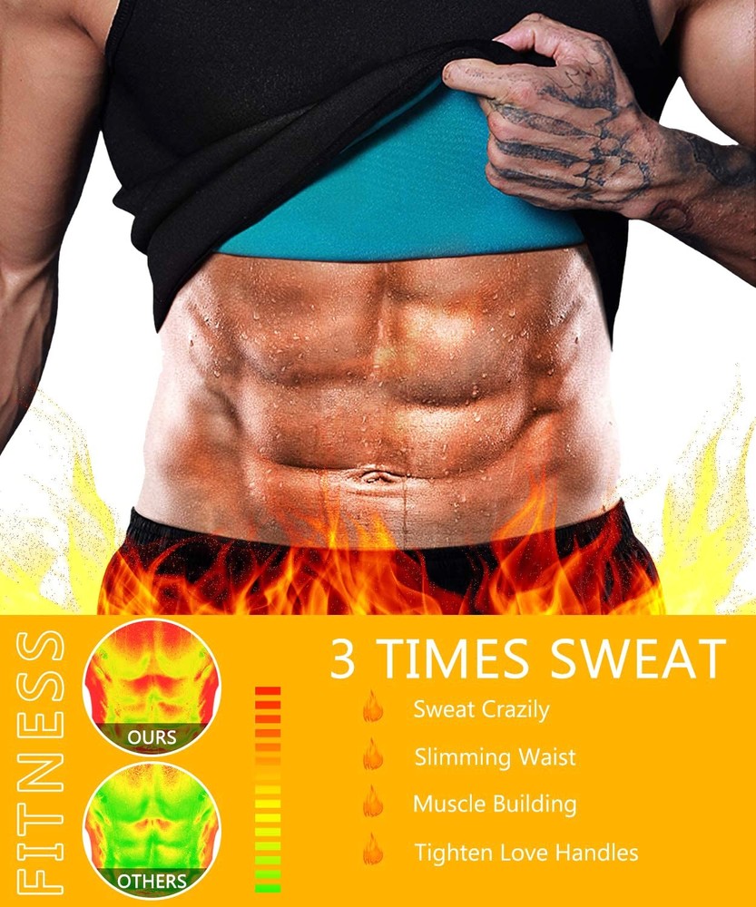 How does this sauna vest works and make you sweat like crazy, burn more fat, produce heat and weight loss: Firstly by raising your core body temperature, so your body has to work far harder to cool down and maintain a healthy temp. (this is called to thermo regulate). This process causes the body to burn off at least 50% more fat because of the extra energy (increased energy expenditure) your body uses to cool down and maintain a healthy core temperature. Secondly they cause the body to produce a heavy profuse sweat. To create sweat your body uses up massive amounts of fat and energy and burns 0.7 calories for every gram you produce. Scientific testing shows an extra 300-800kcals can be used in a workout wearing a Sweatz Quick Weight Loss Vest. This actually burns off at least twice the amount of calories and fat, accelerating your quick weight loss to a tremendous level. Thirdly they put you straight into the fat burning zone which usually takes over 30mins. So your actually burning fat for your full workout instead of just the average 20mins of a 1hr session. This makes fat burning 3 times more effiecient. Fourthly When wearing the vest your metabolic rate is increased by roughly 30% giving you an extra 30% more fat burn whilst working out. Altogether they burn off at least twice the amount of fat and make you lose weight weight twice as fast This men body shaper is very suitable for not only gym,running ,workout,exercises or any others sports, but also fit for wearing around the house, walking or working Sauna vest burn fat more than regular gym clothing,fits snuggly around your midsection,helps posture for back and abs as you workout Making you sweat crazy when you workout keeping body warm during cold days,waist trainer vest can be worn under or over your regular shirts Slimming vests with no zipper is very comfortable to wear, can burn more fat, produce heat while wearing during workout,accelerating quick weight loss Neoprene material produce higher compression leading more sweating and help your body to sweat out harmful fats and toxin. Abdominal flatten and spinal support Gym workout tank top doesn’t stink too much after prolonged use, easy clean and washable, please hang it outside to air dry