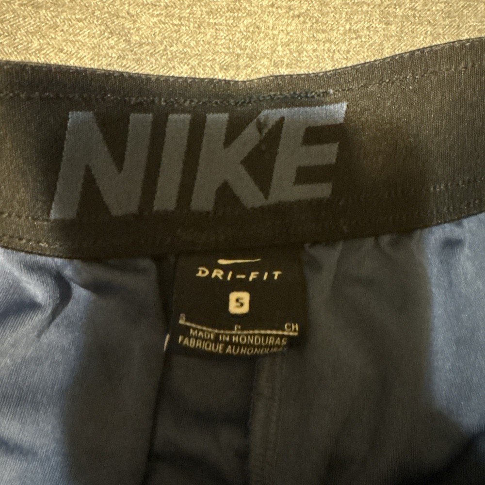 The product is a pair of men's Nike Dri Fit shorts in size small. These athletic shorts are designed for active wear and feature the signature Nike branding. The color of the shorts is blue, making them versatile for various athletic activities or casual outings. With a comfortable fit and stylish design, these shorts are a great addition to any man's wardrobe.