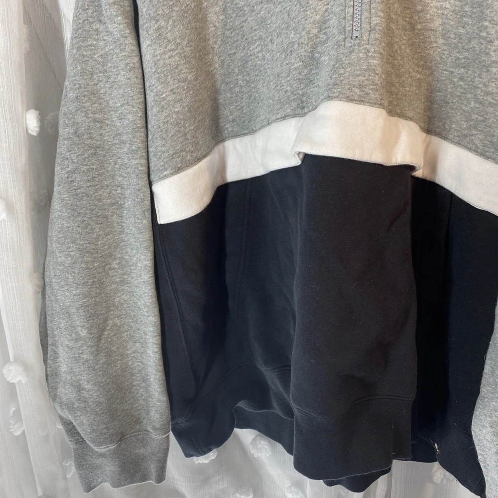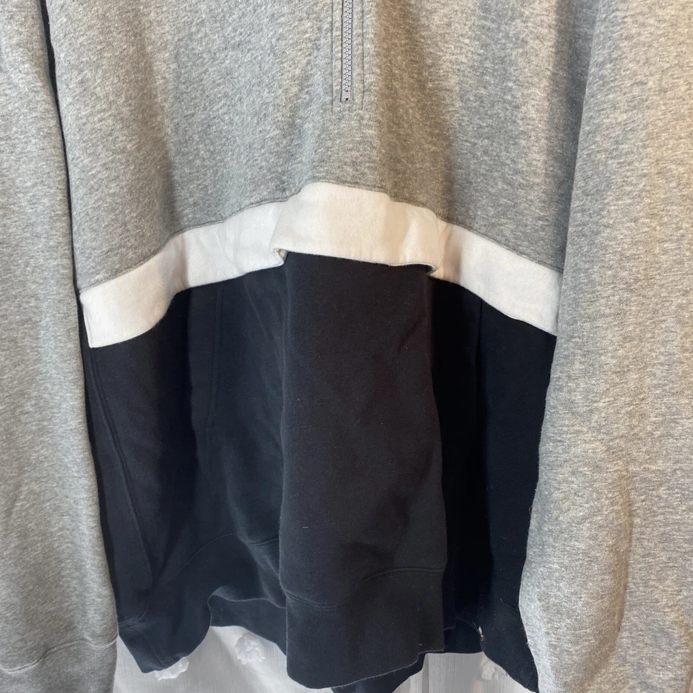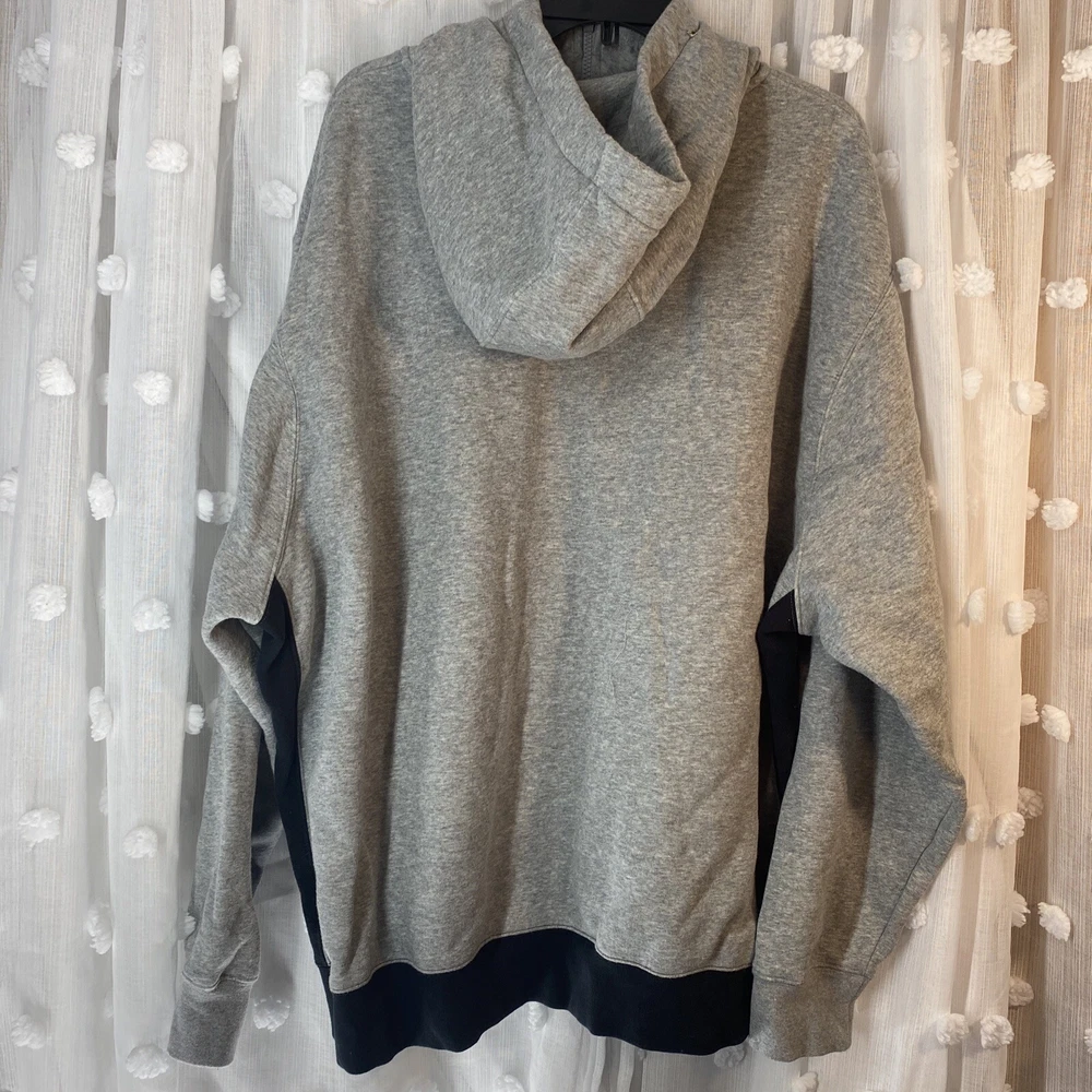Elevate your sportswear game with this Men's Nike Sportswear Club Fleece 1/2 Zip Hoodie in Black, Gray, and White. Made with a comfortable cotton blend fleece material, this hoodie features a stylish 1/2 zip design and Nike branding on the front. Perfect for any casual occasion, this hoodie is available in size 3XL and is a regular fit for men. The gray and black color scheme makes it easy to pair with any outfit, while the Nike Sportswear product line ensures quality and style.(c64)