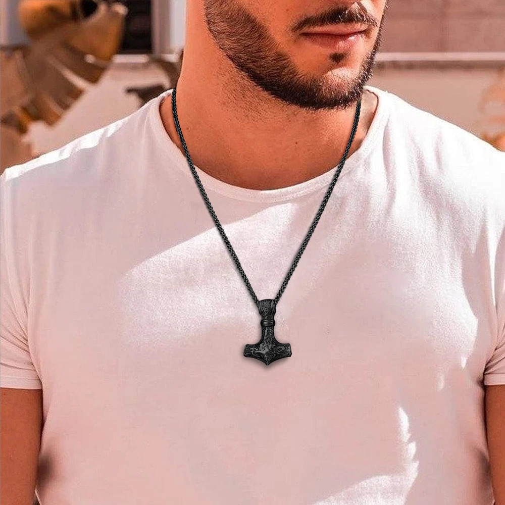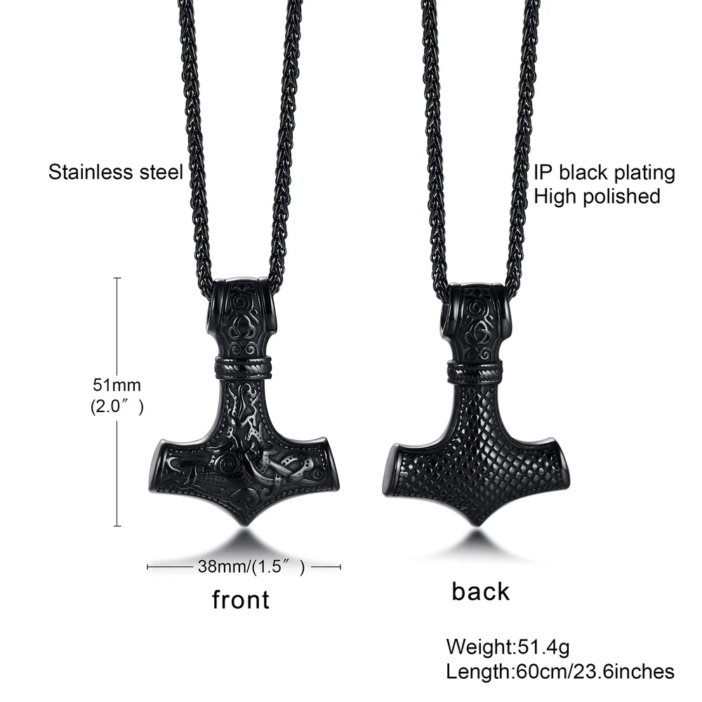 Men's Nordic Viking Thor's Hammer Pendant,Stainless Steel Vegvisir Mjolnir Mythology Talisman Necklace,Nordic Amulet Jewelry,Black DESIGN:Mjolnir hammer is one of the most powerful Norse symbols. Thor Hammer Necklace always renders wearers with strength to overcome hardship, bravery to encounter fear, and generosity to treat people around. DETAILS: * Style: Thor's Hammer Necklace/Norse Viking Jewelry * Color: Silver-tone,Black * Polish Finish * Size: Free 24" Chain PERFECT GIFT :This beautifully crafted Nordic Viking Mjolnir Thor Hammer Pendant Necklaces makes an ideal gift for men, perfect for any gift giving occasion, great gift for father's day, christmas, anniversary, thanksgiving day, valentine's day, graduation, birthday and casual days to your dad, husband, boyfriend, brother, friends or just as a surprise to remind that special one how much you care! MATERIAL: We choose stainless steel instead of alloy or brass. Because it's highly resisted to rust, corrosion and tarnishing. Durability and Fashionable. All makes it a top fashion accessory. PACKING&AFTER SALES: Comes with grey Velvet bag or Gift Box,Great for Gift giving!30-Days Money back guarantee,100% Secure shopping. Please rate 5 star if you are pleased with our product. Description Men's Nordic Viking Thor's Hammer Pendant,Stainless Steel Vegvisir Mjolnir Mythology Talisman Necklace,Nordic Amulet Jewelry ITEM DETAILS Condition: 100% brand new Lenght:24" Weight: 51.4g Color: Silver-tone,Black Material:Stainless Steel Package Included: 1pcs stainless steel necklace+a free jewelry bag More Details: as the pictures show Ideal Gift Unique gift for your dad,husband,boyfriend,lover,brother,groomsman etc, or a good treat for yourself. Daily wear,It's dainty can be worn every day. Perfect gift for birthday, anniversary,engagement,christmas,graduation, valentine's day, Wedding etc. CARE TIPS 1.Do not wear it to the pool, spa, or the beach.? 2.Please avoid the collision, so as to avoid surface scratches. 3.Remove when sleeping, exercising, or doing other physically strenuous activities. 4.Store your beloved jewelry in a cool dry place. PJ Jewelry has a broad range of fashion jewelry such as bracelets,necklaces,rings, earrings and other jewelry accessories. Hope our jewelry piece light up your outfit and life. Shipping We offer FREE shipping on all orders! We ship within Three business days of payment, usually sooner. We use a selection of shipping services such as UPS, FedEx, USPS etc. We only ship to the lower 48 states, no APO/FPO addresses or PO Boxes allowed. Local pickups and combined shipping options are not provided at this time. Return You can return a product for up to 30 days from the date you purchased it. Any product you return must be in the same condition you received it and in the original packaging. Please keep the receipt. Payment We accept payment by any of the following methods: PayPal Please pay as soon as possible after winning an auction, as that will allow us to post your item to you sooner! Feedback Customer satisfaction is very important to us. If you have any problem with your order, please contact us and we will do our best to make you satisfied. Contact Us If you have any queries, please contact us via ebay. We usually respond within 24 hours on weekdays. Please visit our eBay store to check out other items for sale! Thank you for shopping at our store.