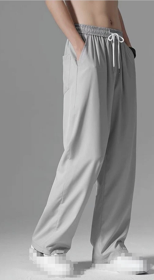 Men's Loose Fit Linen Cotton Elastic Waist Casual Streetwear Trousers