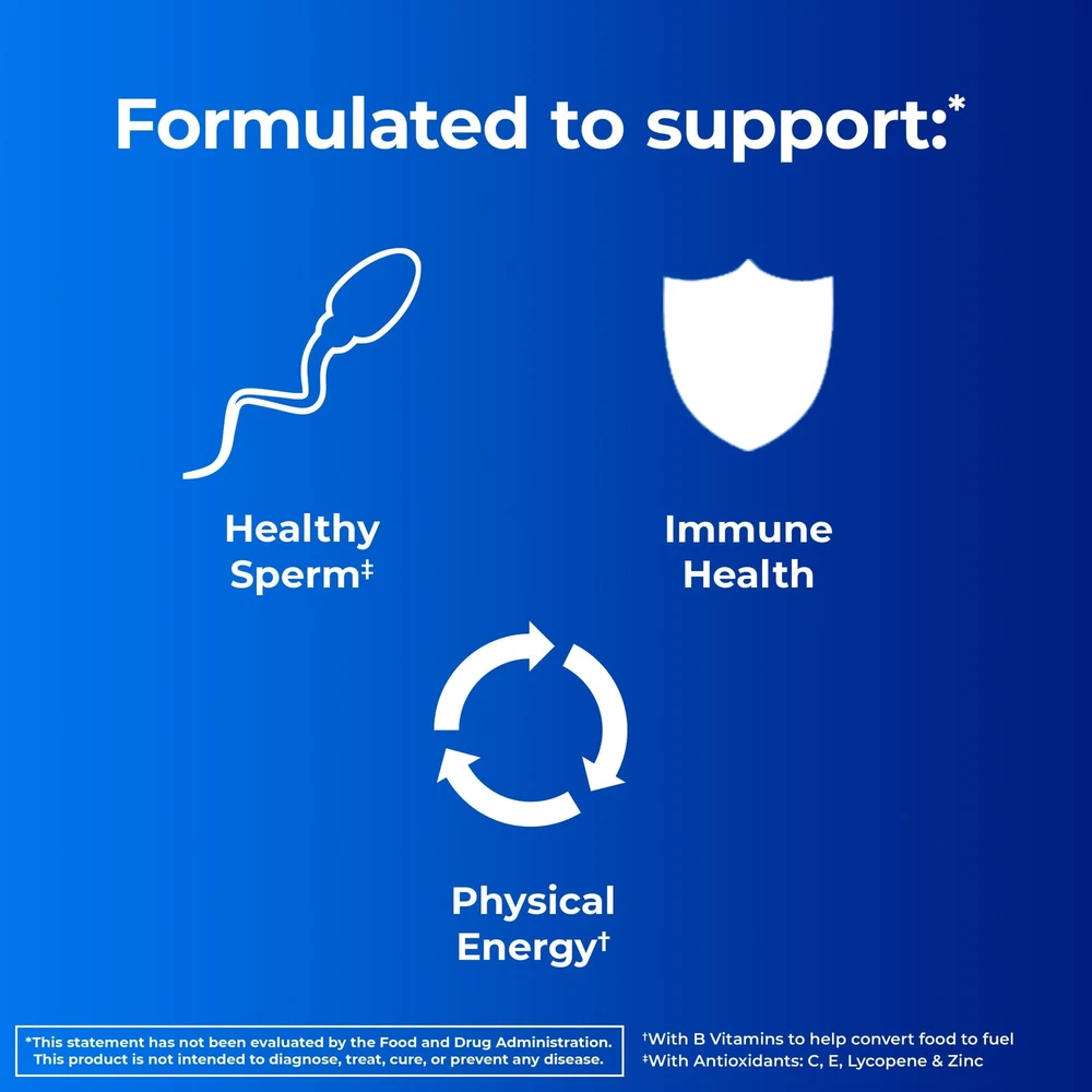 For the future father, Men's pre-conception health is a complete multivitamin with powerful antioxidants including Vitamin C, Vitamin E, selenium, zinc, and Lycopene that help to support healthy sperm. Men can benefit by taking 1 tablet daily for at least 3 months before conception, and can switch to a regular Men's multivitamin after conception to continue supporting nutritional health and well-being. Adult men should take 1 tablet daily with food. Originally only available in the his & hers pre-pregnancy multivitamin pack, Men's pre-conception health is now a standalone multivitamin to support healthy sperm in men. This statement has not been evaluated by the Food and Drug Administration. This product is not intended to diagnose, treat, cure, or prevent any disease. Men's Pre-Conception health is a complete multivitamin specially designed to provide nutritional support while trying to conceive With powerful antioxidants including Vitamin C, Vitamin E, selenium, zinc, and Lycopene which support healthy sperm For future dads, we recommend taking our Pre-Conception multivitamin for men at least 3 months before conception Directions: adult men take 1 tablet daily with food Men's Pre-Conception health is free of gluten, artificial sweeteners, artificial flavors, high fructose corn syrup, and dairy (milk) Allergen