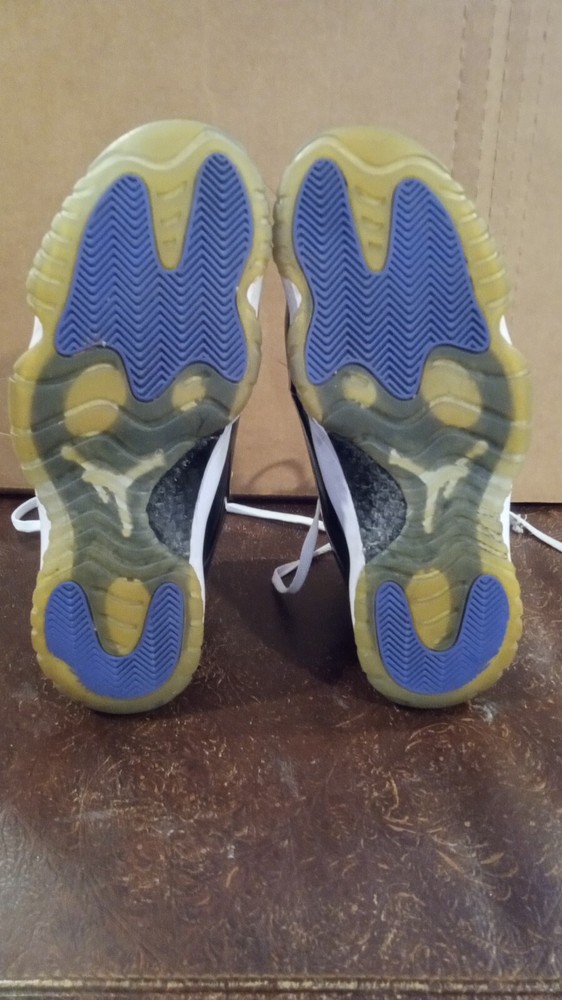 Elevate your sneaker game with these stylish and versatile Jordan 11 Retro High Concord sneakers. Designed with a lace-up closure, these shoes are perfect for any occasion, whether it's for activewear, casual wear, or workwear. The high-top shoe shaft style and solid pattern in a beautiful purple color make these sneakers a must-have for any sneakerhead. Crafted with a leather upper material and foam insole material, these shoes are built for comfort and performance. The rubber outsole material ensures durability, making them suitable for all seasons. These sneakers are perfect for basketball players and fans alike, with the Air Jordan product line and retro theme. READ SNEAKERS ARE IN USED CONDITION WITH PILLING ON THE INNER ANKLE AREA , OTHER THAN THAT THEY ARE IN VERY GOOD SHAPE.