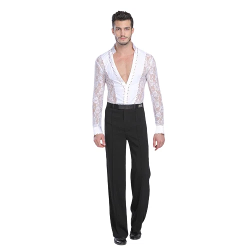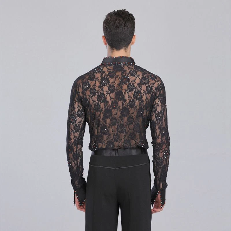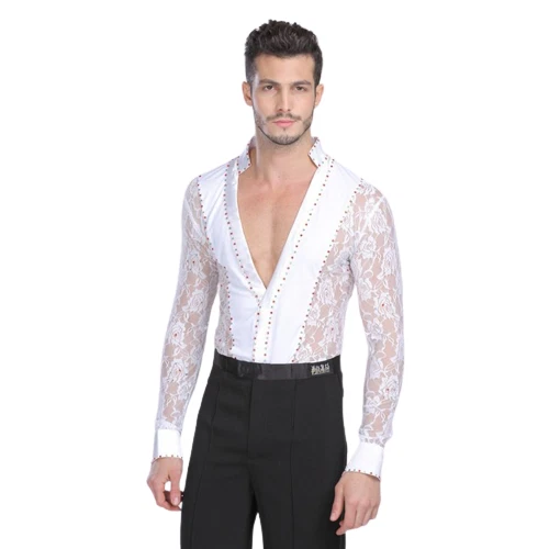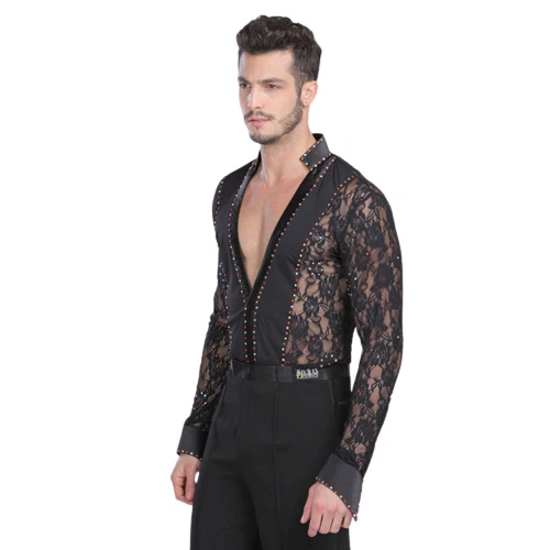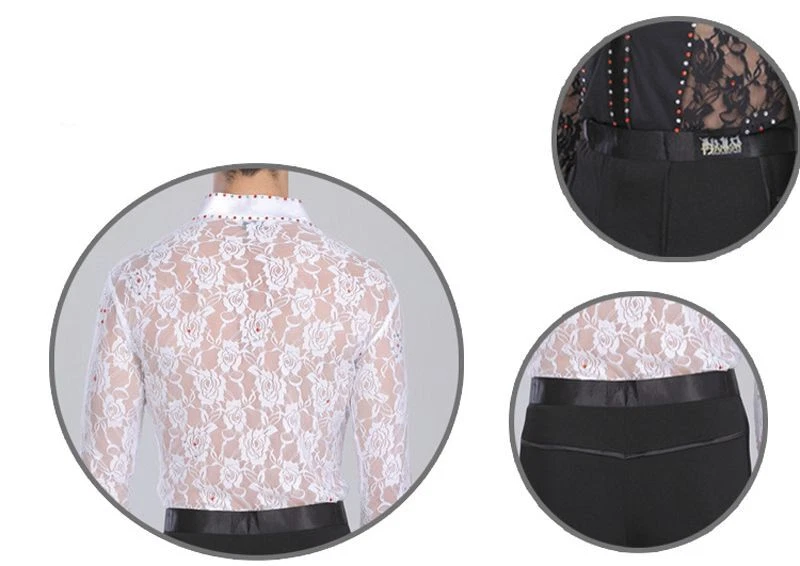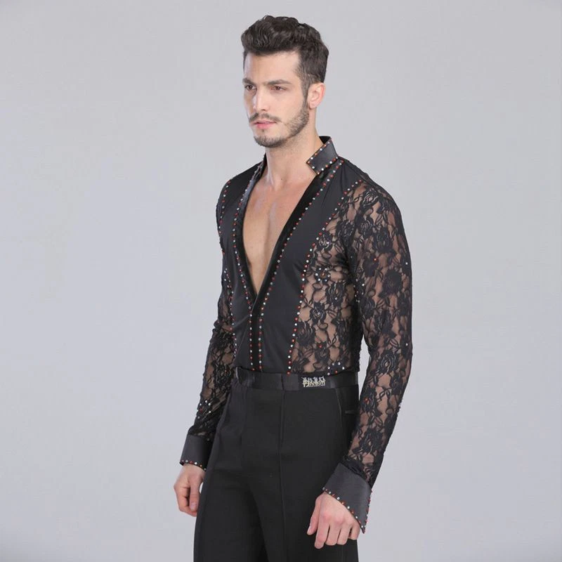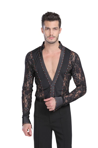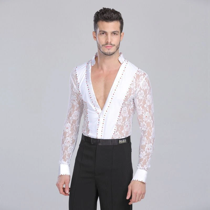 Mens Professional Lace Shirts Deep V Neck Tuxedo Long Sleeve Male Asian Size Features: 1.100% Polyester 2.Mild Hand wash(Washed with cold water) 3.Occasion: Great For Modern Waltz Foxtrot Tango Ballroom Latin Flamenco Rumba Samba Salsa Dance Show Case, Practise & Performance 4.Asian Size, please check the size chart,if you are not sure, please send us message, we will help you check the size 6.Due to Manually measurment, there will be 1-2 cm error for the size chart Package included: 1 Pcs * Shirt