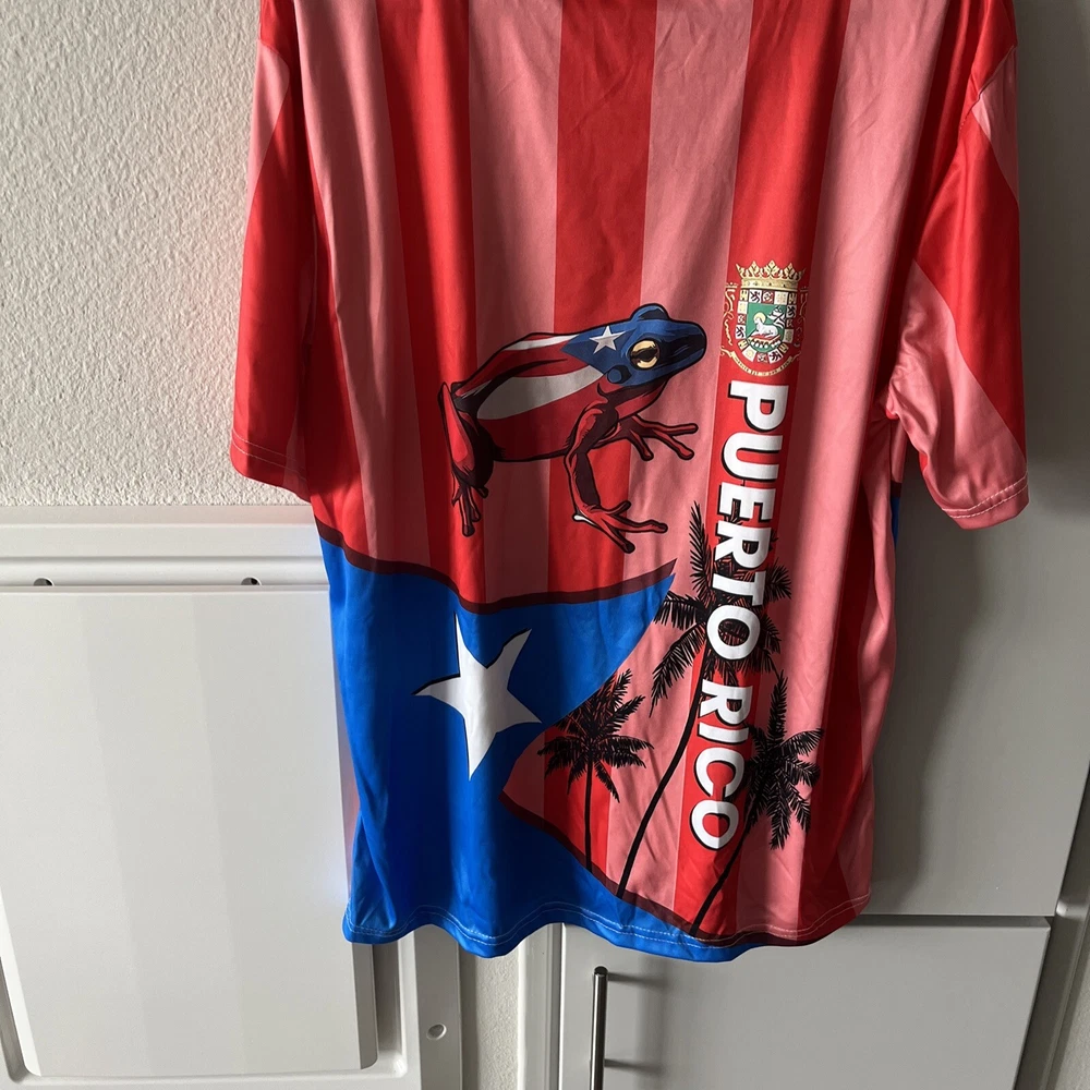 Show off your love for Puerto Rico with this stylish and comfortable t-shirt. Featuring a double-sided print with the Puerto Rico flag, and the infamous Coqui logo,this shirt is perfect for any occasion. Made from lightweight and breathable polyester material, this shirt is machine washable for easy care. The shirt is designed with a crew neckline and short sleeves, making it ideal for summer, fall, and spring seasons. In addition to the flag accents, this shirt also has a coqui logo print, adding a touch of uniqueness to your wardrobe. With its regular fit and stretchable fabric, this shirt is perfect for any man who wants to look and feel great. Whether you're a resident of Puerto Rico or just love the island's culture, this shirt is a must-have.