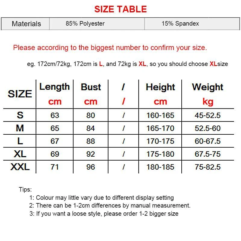 Men's Compression Tank Top: Performance and Style for Your Workout Elevate your workout with this comfortable and performance-driven compression tank top. Crafted from breathable, quick-dry polyester, this tank top is perfect for high-intensity workouts, running, or any activity where staying cool and dry is essential. Key Features: Compression Fit: The compression fit provides support and helps reduce muscle fatigue, enhancing your performance and providing a sleek, streamlined look. Quick-Dry Technology: Stay cool and dry with the breathable fabric that wicks away moisture, keeping you comfortable during even the toughest workouts. Classic Design: The simple, sleeveless design with a round neck offers a comfortable and practical look, perfect for both the gym and casual wear. Versatile Use: Perfect for a variety of workouts, running, or even casual wear. Choose from a range of colors (Black Blue Python Red White) and boost your performance with this comfortable and stylish tank top. Details: Type: Tank Department: Men Color: Black Blue Python Red White Product Line: Men's Gym Compression Tank Top Gym Quick Dry Sports Fitness Vest Performance/Activity: Baseball, Basketball, Fitness, Running, Workout, Gym, Sports, Bodybuilding Sleeve Length: Sleeveless Model: Men's Gym Compression Tank Top Gym Quick Dry Sports Fitness Vest Compression Level: Mild Features: Quick Dry, Comfort, Breathable Style: Basic Material: POLYESTER Neckline: Round Neck Fit: Fits Smaller Than Usual. Please Check This Store's Sizing Info Size Type: Regular, Big & Tall Pattern: Solid Vintage: No Fabric Wash: Medium Accents: Closure: Pullover Theme: Sports Fabric Type: Microfibre Country/Region of Manufacture: China Occasion: Activewear Season: Summer Sleeve Type: Casual Sleeve Garment Care: Machine Washable Colors: 5 Colors Materials: Polyester Blend Name: New Compression Tights Gym Tank Tops Keywords: Men's Tank Top Sleeveless Tank Top Gym Tank Top Running Tank Top Compression Tank Top Workout Tank Top Sports Tank Top Order your performance tank top today and elevate your workout! Please kindly note that, sizes are Asian sizes, Usually 1-2 sizes smaller than EU, UK, US, & AU sizes depending on the fit you are after.