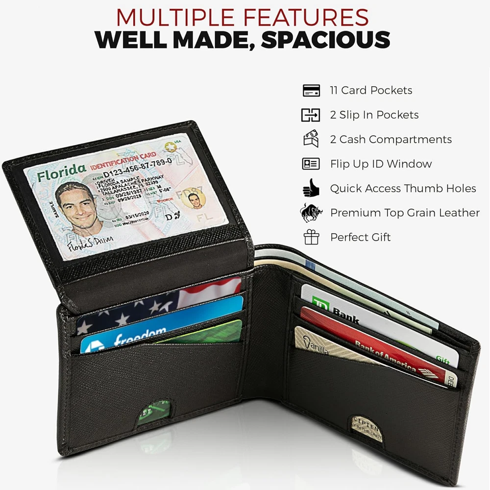 Love this wallet! The RFID protection keeps my cards safe, and the sleek Saffiano leather holds up well. Super practical with the flip ID feature—quick access without pulling it out. Arrived fast, and the customer service was excellent. Perfect size for front pocket carry, not bulky at all. Definitely worth it, gets the job done with style!