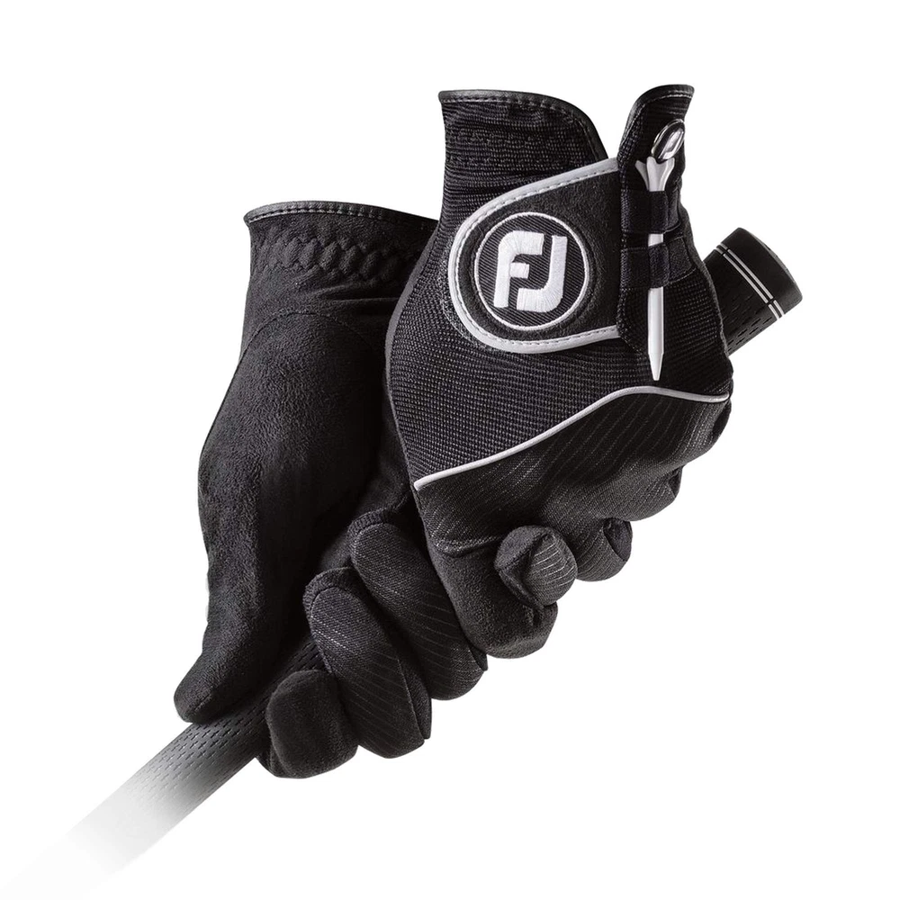 The world's #1 men's rain golf glove is essential equipment for rain-ready play. QUICK-DRY COMFORT - The QuikDry II knit material along the back of the fingers, assures optimum breathability, flexibility and quick-drying comfort. BALLMARKER - A removable ballmarker offers golfers a quick and easy solution to mark their ball. SOLD IN PAIRS - FJ RainGrip gloves are sold in pairs. PRECISE FIT - The angled ComforTab closure is strategically positioned for a precise fit and stress-free comfort. WET-WEATHER GRIP - The autosuede knit palm provides an unmatched grip in wet or humid conditions, conforming to both your hand and club for a secure grip and maximum control. Material Type: Suede;Polyester;Spandex