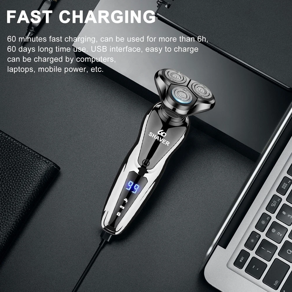 Descriptions: No Pain Shaving: 1 Hour Full Charge : LED Display: IPX7 Waterproof System: Specification: Voltage: 5V/1A Rated Power: 5W Charging Time: 1h Using Time: 1.5h Standby Time: 90 Day Package List: 1 * Electric Shaver 1 * USB Cable 1 * Cleaning Brush 1 * User Manual Men's Razor Rotary Waterproof Electric Shaver Pop-Up Trimmer Wet Dry Cordless US Descriptions: No Pain Shaving: 5V motor provides up to 2900RPM power. 360° dead angle shaving head delivers more smooth, close and comfortable shave every time in low noise, you can enjoy painless shaving. 1 Hour Full Charge : Support USB quick full charge in about 60 mins and the electric shaver can work 120 minutes. It allow one-hand cordless operation and very convenient for your daily and long travel. LED Display: Visible battery remaining indicator on the shaver so you can check the remaining battery quickly and accurately before charging. No need to worry about the electric razor running out of power. IPX7 Waterproof System: The whole body washable allows you enjoy a wet and dry shave even in the shower with foam or gel for an easier and better shaving experience. Specification: Voltage: 5V/1A Rated Power: 5W Charging Time: 1h Using Time: 1.5h Standby Time: 90 Day Package List: 1 * Electric Shaver 1 * USB Cable 1 * Cleaning Brush 1 * User Manual Payment Shipping Return Contact us About us Payment 1.Paypal, Credit Card, G Pay etc, many payment way is accepted. 2.Please be sure your shipping address is correct before make a payment. Shipping 1.We will ship out the item within 1-3 business days after comfirming the payment, appreciate your patience. 2.If the items are broken on the way( we will check the orders clearly before we sent them ),please contact us in 3 days you received it. We will send you a new one or refund your payment. Return 1.We stand behind every buyer.Items can be returned for exchange or refund within 30 days. 2.Please contact us when you have any confusion of our item, we will solve the trouble for you as soon as possible. Contact us 1.This is professional Seller.We will reply your message within 24 hours. 2.Please contact us whenever you have any question about the item. We will deal with it as soon as possible. 3. If you are unhappy with the item or our service,please Contact Us before leave feedback,just give me a chance,thank you! About us 1. Unless specified otherwise, all our products are IN STOCK and are shipped from Local warehouse - Not Overseas! 2. We provide a 30 day Satisfaction Guarantee or your money back (provided items are in the same new and resaleable condition.) 3. We have a PayPal Verified Business Account, please buy with Confidence! 4. Every item will be tesrted before send.We know our products well and if we don't have the answers we will do our best to find them for you! 5. Our friendly team look forward to serving you! Your satisfaction is our No.1 Priority We will do our best to satisfacy you.
