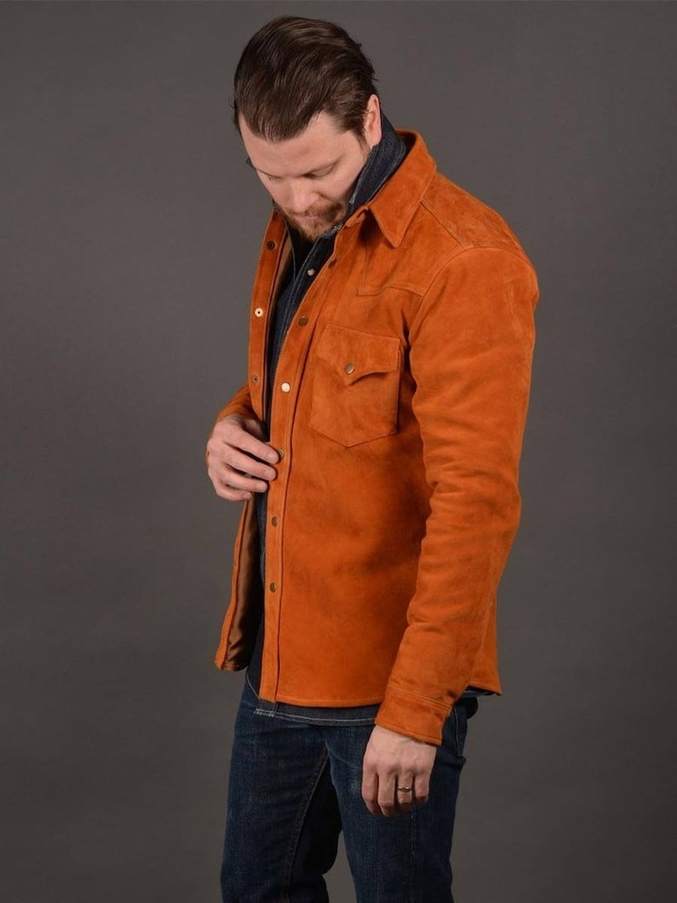 Men's Premium Brown Suede Leather Jacket Handmade Classic Stylish