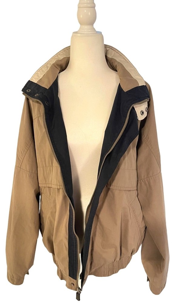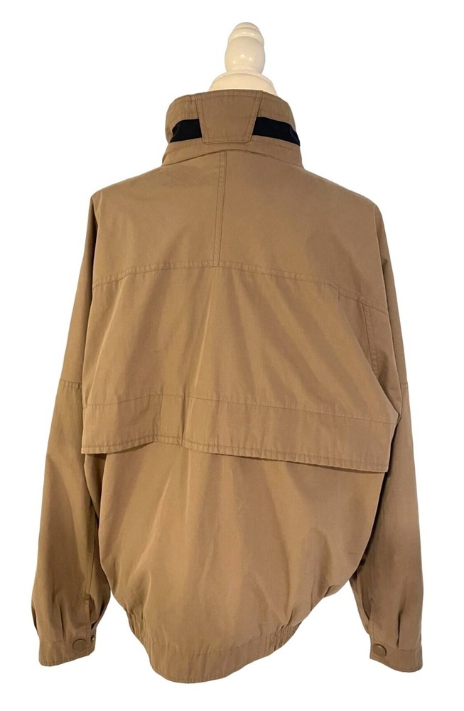 Need to channel your inner Maverick or Goose? This tan bomber jacket is your ticket to retro-ville. Fight the cold and stay stylish, even if you're just fighting the couch. • Snap & zipper front closure • Elastic waistband • Shoulder epaulets • Dual front pockets Top to bottom = 30" P2P = 26"