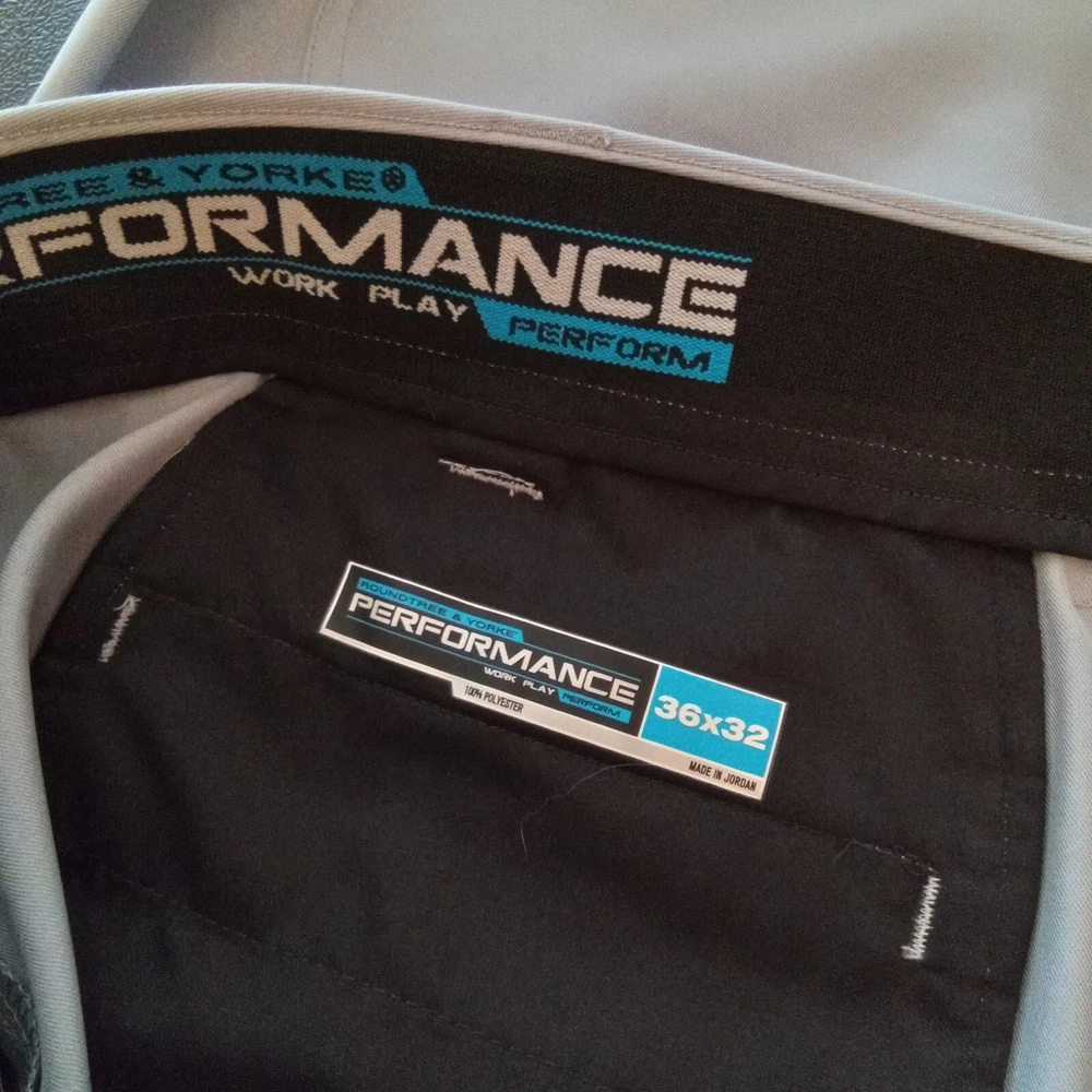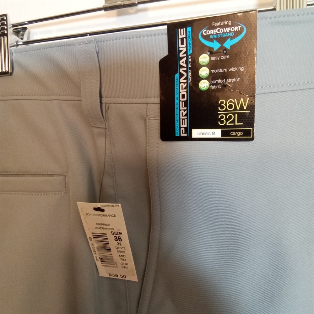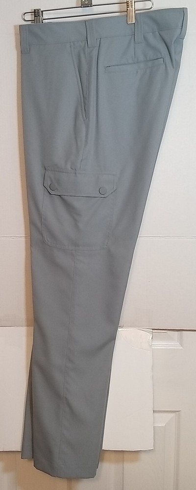NWT. Elevate your work wardrobe with these versatile cargo performance pants from Rountree & Yorke. Crafted from moisture-wicking polyester material, these pants come in a classic fit with a straight leg style and flat front design. The gray color and solid pattern make them a timeless addition to any outfit, while the snap button and zipper accents add a touch of style. The pants feature cargo and slash pockets, making them practical for carrying essentials. They are machine washable, making them easy to care for. These pants are perfect for summer, fall, and spring seasons and are available in size 36 waist and 32 inseam. Add these pants to your collection for a comfortable and stylish option for work or casual outings. MSRP $59.50 G10 BOX - 1392