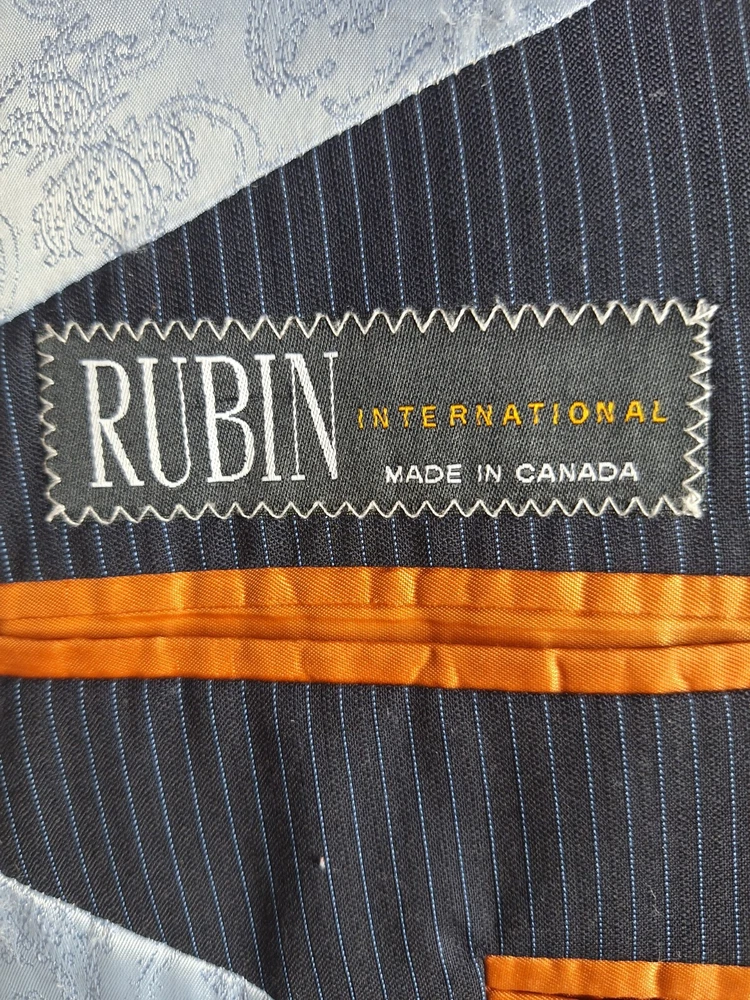 Rubin 2 Piece suit Mens 42L 36X31 Black Blue Stripe Wool Double Vented Quality used condition. Please check out the measurements before buying to ensure a perfect fit.Tailored from 44 to 42L Shirt Size on Label 42L Shoulder- Hem 33.00'' Shoulder- Shoulder 20.00'' Shoulder- Wrist 26.00'' Armpit- Armpit 22.50'' 21.00'' Everything ships within a day. Feel free to message me with any questions. Thank you very much. 10/9/24 Pants Flat Front Cuffed Quality used condition. Please check out the measurements before buying to ensure a perfect fit.a tear in belt loop Fabric Pants Size on Label Seam (Outer) 40.00'' Waist 36.00'' Waist- Crotch 12.00'' Inseam 31.00'' Extra inseam fabric 1.20'' Everything ships within a day. Feel free to message me with any questions. Thank you very much. 10/9/24