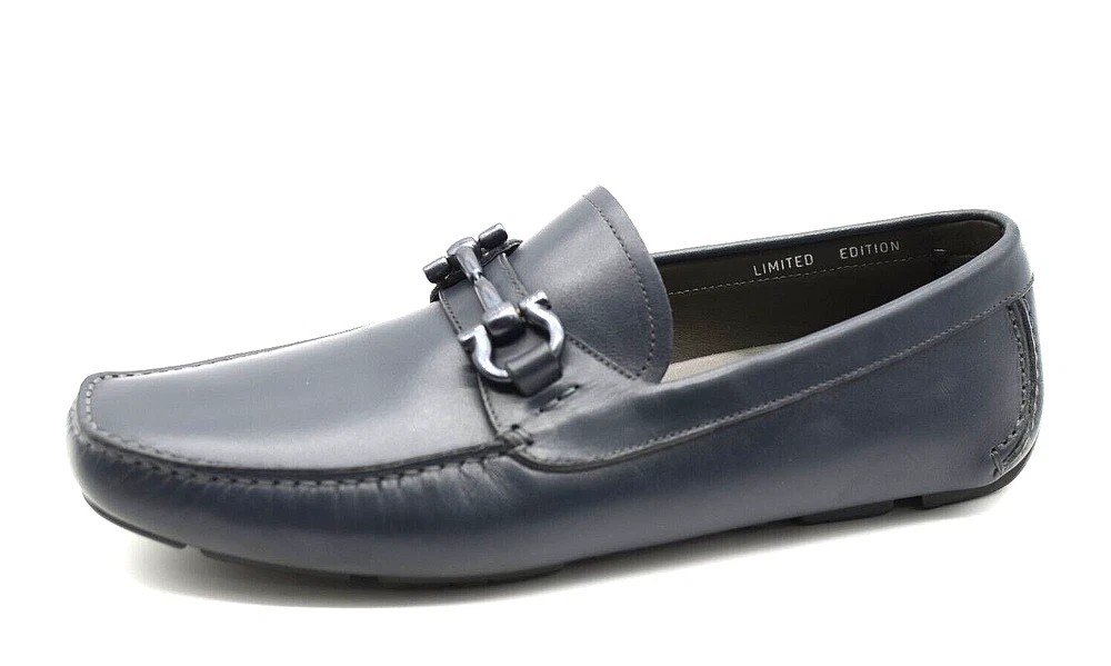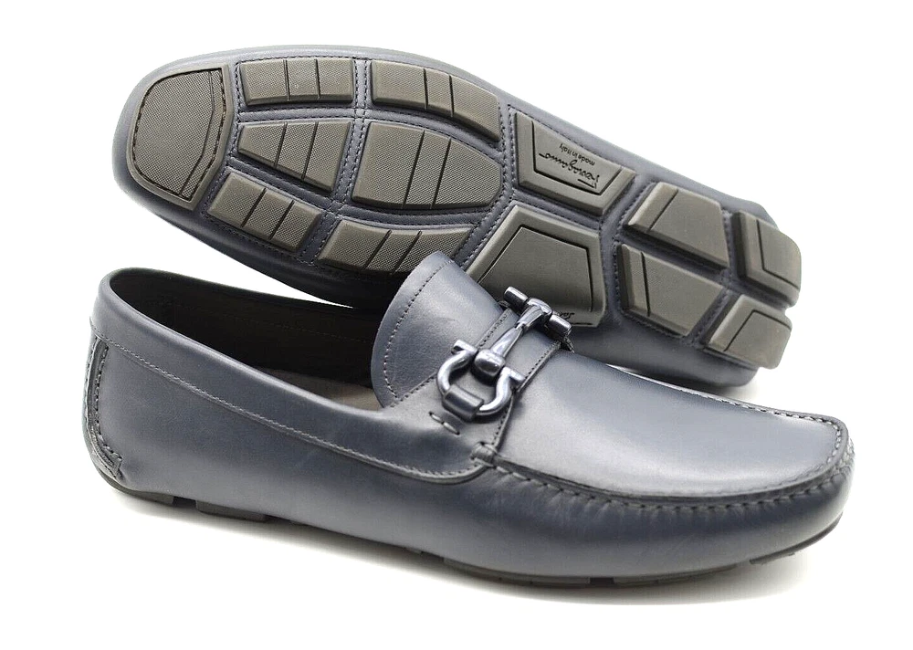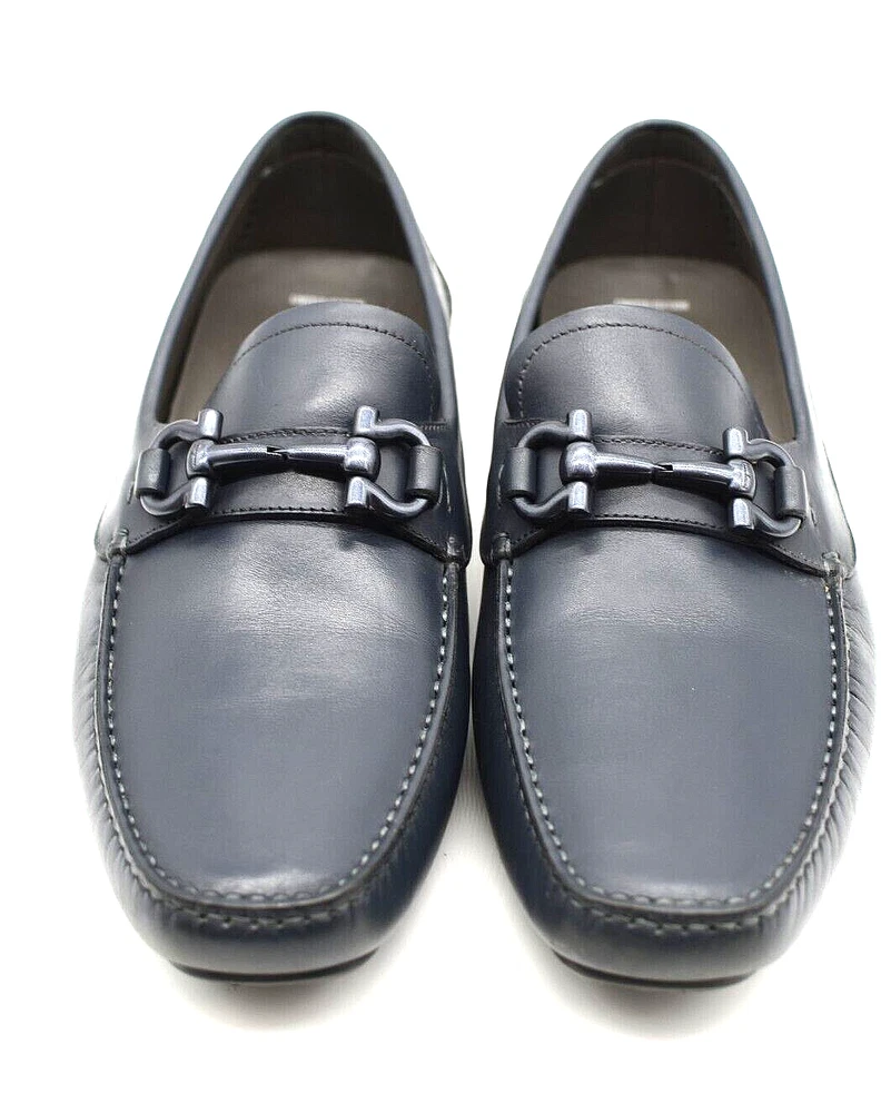 Men's Salvatore Ferragamo 'Parigi LE' Navy Blue Leather Loafers Size US 9.5 - EE