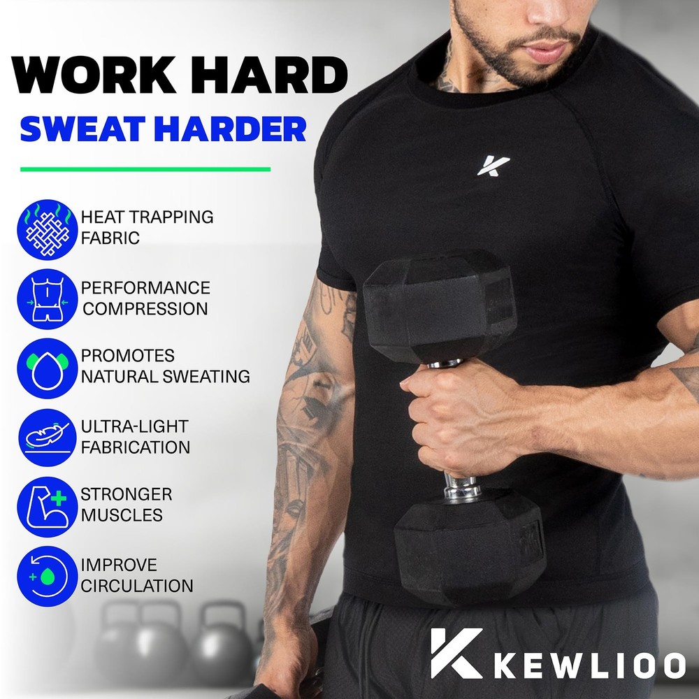 WORK HARD, SWEAT HARDER This compression waist toner for men is the ultimate addition to your weight loss journey, simply wear it (discreetly) under any outfit and WATCH the transformation. Designed to fit smoothly and discreetly, it will trim down and compress your waist and belly so you instantly look more toned while trapping the heat in key areas and shedding water weight lightning-fast . Performance Compression Keep it a secret: no one will even notice you're wearing a waist trimmer, it fits comfortably and discreetly and is super easy to carry. Makes you look leaner and tones your waistline. Highly flexible, versatile, and durable. Sweat Absorbing Fabric Sweat inside but keep dry on the outside: this garment was designed to increase perspiration but keep it all inside. Fully Machine Washable: spend more time working out and less time running errands, this garment is fully machine washable. Made from high-quality polymer spandex composition, this waist toner will get you sweating like CRAZY in NO-TIME. Increase Heat Exposure Helps burn more calories FASTER by deploying pressure on your body during physical activity and forcing it to adapt. [SNUG & TIGHT FIT - PLEASE SIZE UP] - If you're in between sizes or want some extra room we recommend picking 1 size larger then your normal size. This Sauna Shirt works best when it fits closely to your body so it can really work it's magic and get the make every step count. SWEAT MORE - Sweat hard, keep dry: this garment was designed to increase perspiration but keep it all inside. sauna suit stimulates sweat during exercise 3x times more than normal clothing to aid in burning fat by preserving body heat where it matters most: your abs, lower back, chest & waist. The waist slimmer makes you sweat in the right spot using the comfort anti-slip waistband that is absorbing sweat so you're always dry on the outside. FAST RESULTS - Maximize heat exposure and helps burn more calories FASTER by deploying evolutionary pressure on your body during workouts or everyday activities and forcing it to adapt. Speed up recovery time: keeps your muscles warm so you can ease in and out of physical exercise and help prevent muscle or joint injuries. PREMIUM QUALITY - Made from high-quality polymer fabric, this waist toner traps the heat and intensifies natural sweating 3x times more so you'll enjoy a hot-sauna-like experience and the associated health benefits. More sweat, less time. This shaper workout shirt will make you look slimmer INSTANTLY. It's built with a special technology that compresses the belly and hips. You can wear it with other exercise equipments and everyday clothes. SLIMMING COMPRESSION & SUPPORT - This compression t-shirt for men is the secret weapon for your fitness journey, simply wear it discreetly under any outfit and watch your body transform! Put this waist toner on and Instantly feel how it tucks your tummy in, trims your waistline and give you a more toned and athletic look.