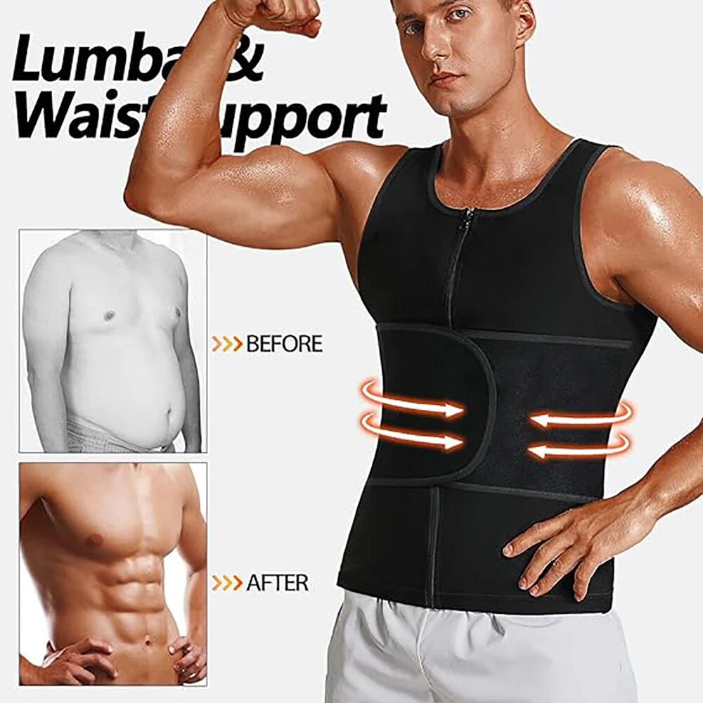 Mens Sauna Sweat Suit Waist Trainer Fat Burner Vest Tank Shaper Girdle Corset US