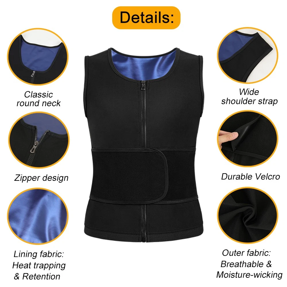 MPN: Does not apply Accents: Zipper Style: Girdle,Waist Trainer,Shaping Top,Tank Brand: Unbranded Country/Region of Manufacture: China Features: Adjustable Strap, Front Closure, Slimming, Sleeveless, Fat Burner, Sauna effect, Tummy Control Type: Shapewear Compression Area: Abdomen, Back, Body, Waist Size Type: Regular Number in Pack: 1 Pack Theme: Sports, Fitness, Gym Material: Polyester, Spandex Department: Unisex Adults Model: Does not apply Garment Care: Hand Wash Only Compression Level: Firm