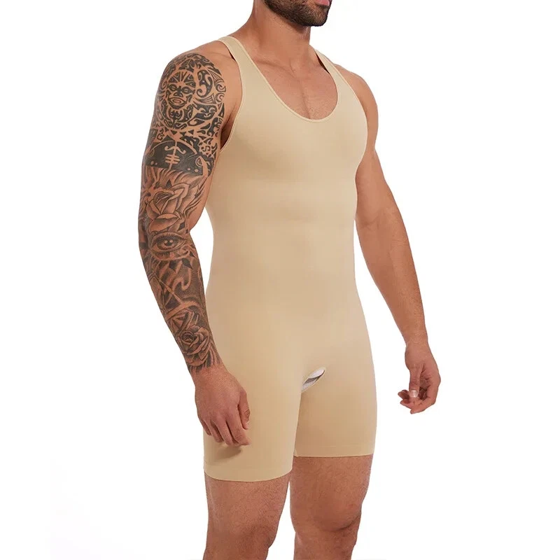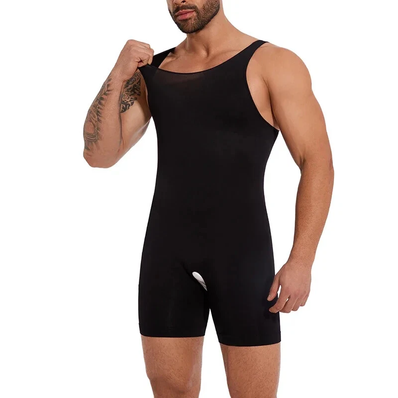 Description Size:S M L XL Fabric: 85%POLYAMIDE 15%SPANDEX Color: Black, Nude360°SHAPE YOUR BODY:Taking on our slimming body shaper for men, you will though away out of any bulge worries and become more confident. This shapewear for men will give your stomach compression to smooth your "man boobs" or "beer belly",tighten your thigh to be slimmer, flat your waist fat,minimize your gynecomastia and slim your chest. SEAMLESS MENS SHAPEWEAR: The bodysuit shapewear for men adopts 360-degree seamless integrated molding, wearing no trace, light and zero bondage, according to the ergonomic light pressure design, fit the body curve. Our mens tummy control compression shaper is made of ultra stretchy material,suitable for all kind of body shape.Our compression shirts for men is undetectable when you wear shirts, t-shirts or suits with it. ONE-PIECE OPEN CROTCH BODY SHAPER SHORTS:Our leotards bodysuit for men is one-piece vest four corners underwear.This fashion bodysuit vest not only can slim your belly, but also tighten your thigh fat.This boxer briefs body shaper has open crotch so that can make you more convienent to go to bathroom.Deep U-neck design will be a super good partner under shirts,hoodie or suits, it can prevent the embarrassment of underwear exposure. STRONG COMPRESSION IN BELLY: This mens tummy shaper has chest and waist special knitting technology which has high pressure to effectively tighten the waist, abdomen and chest, flatten all your bulge.The mens jumpsuit shapewear style design slim thighs, widened foot braid effectively prevent rolling eversion. ULTRA COMFORTABLE SHAPEWEAR: This basic mens waist shaper can be wore all day underneath clothing without uncomfortable,shaping you a super charming body curve.This butt lifting shapewear for men will company with you in any improtant occasion( e.g. wedding,meeting, dating,exercising or travelling),give you brave to do anything you want to do,make you become more confident. Size Information