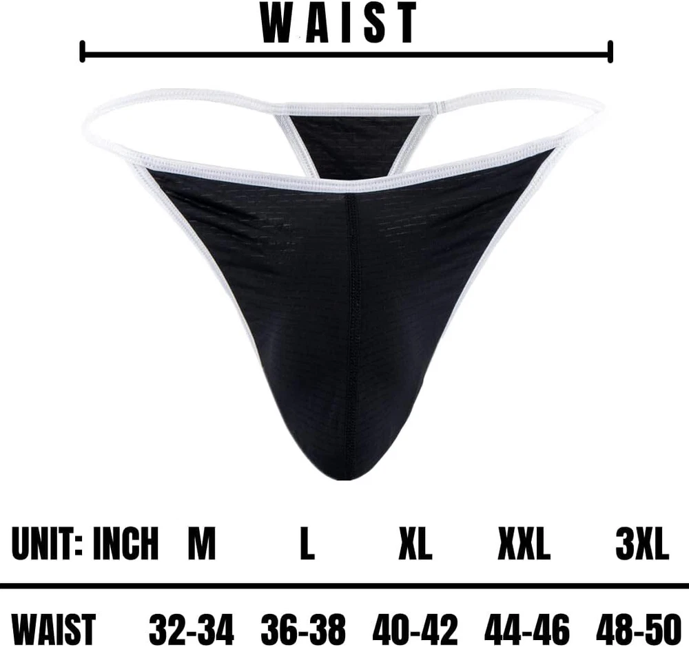 About this item Premium Material: Made from 87% polyamide 13% spandex, thin soft, breathable moisture absorption, anti-wrinkles. Free stretch and close to the skin. Keep skin away from muggy and refreshing all day. Bulge Enhancing Pouch: 3D solid U-convex cutting, independent comfortable large space, keep everything in place up front. Durable Waistband: 1.38 inch wide anti-pilling letter waistband for a snug fit and elastic persistent, comfort to human body and support well. For conforming to male body, even if there is a beer belly. American Size: Medium = 32"-34", Large = 36"-38", X-Large = 40"-42", XX-Large = 44"-46", 3X-Large = 48"-50". Tagless Anti-irritation, reduce the discomfort caused by the friction between the label and the skin and refuse to itch. Care Instructions: Machine/Hand wash in cold and hang dry to maintain maximum performance. If you have any questions( about size, quality color or style ), please contact us and we'll collect suggestions, which will help us improve and provide more high-quality item.