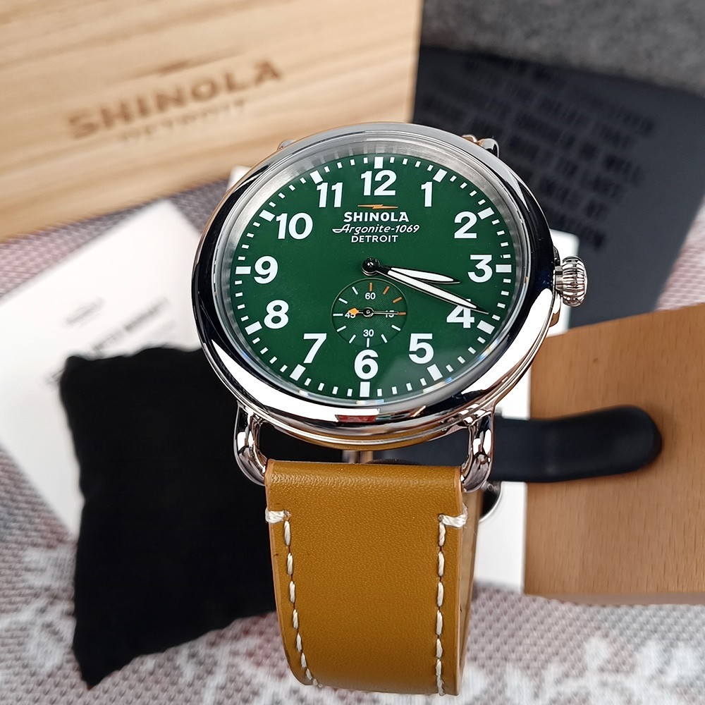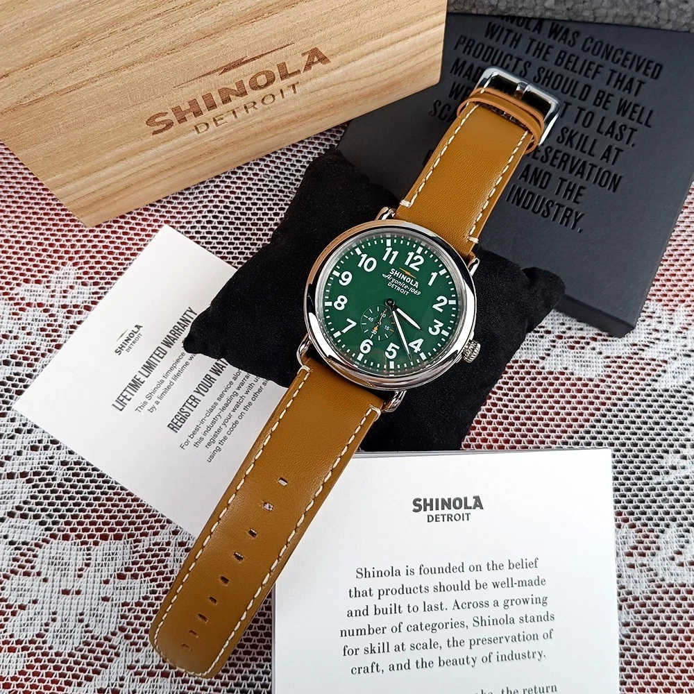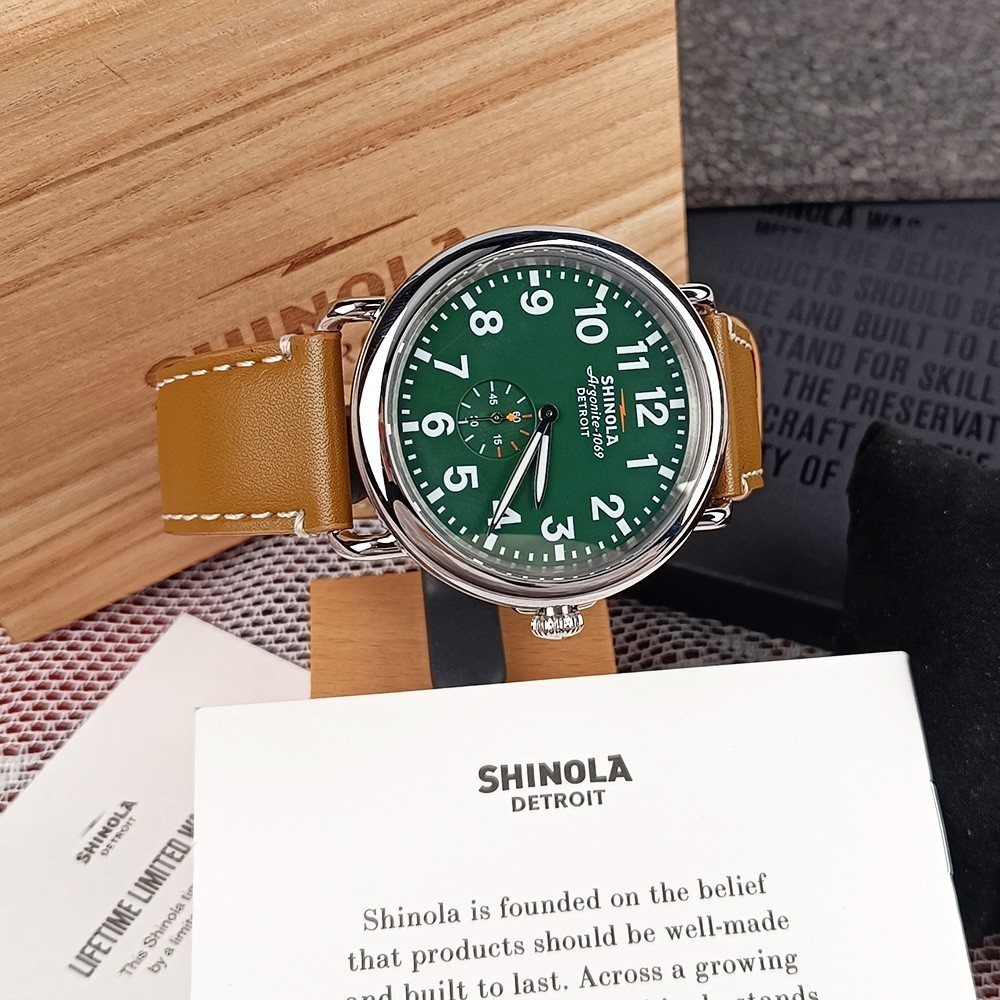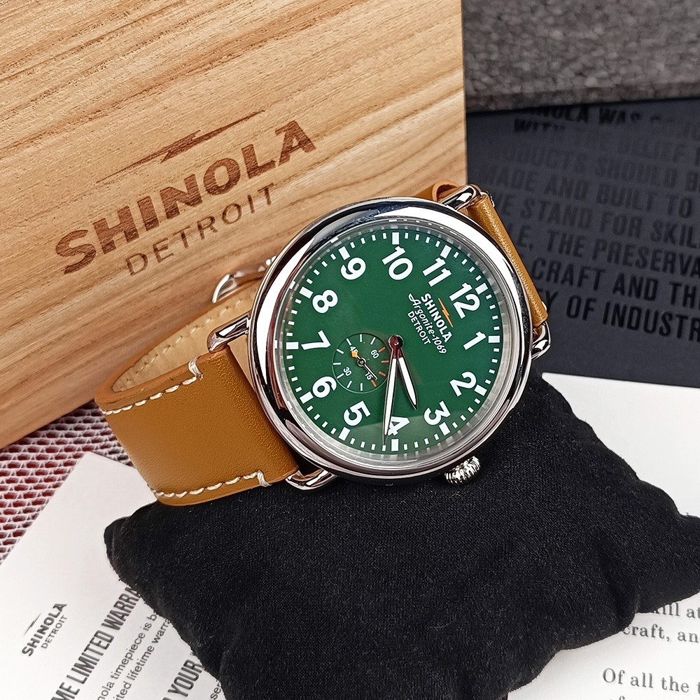Product Details Specific details Brand: SHINOLA Model: Runwell Gender: Man Type: Wristwatch Movement: Quartz Case Size: 47 mm Case Thickness: 10.32 mm Lugs: 24 mm Water resistance: 50 M (5 ATM) Strap color: Brown Dial Color: Green Band/Strap: Bracelet Strap details: Leather Case Material: Stainless steel Crystal: Double Curve Sapphire Screw-down pumpkin crown Super-LumiNova hands Argonite 1069 movement SPECIAL NOTE: If you have any issues while using it, please contact customer service first. We will be happy to assist you. Thank you. Shipping Orders will usually ship within 1 business day of receiving payment. We ship Monday-Friday excluding holidays. Please make sure that your shipping address is correct. Return 30 Days Hassle-Free Return. Contact us 1.If you have some inquires or problems, Please feel free to contact us. 2.We will reply your email within 1 business day (except weekend). 3.When delivery is delayed or items are damaged during delivery, please email us first before you leave feedback. Thank you. Pictures are of the actual product, what you see really is what you get. If you have any questions please feel free to contact us anytime, we are here to assist you.