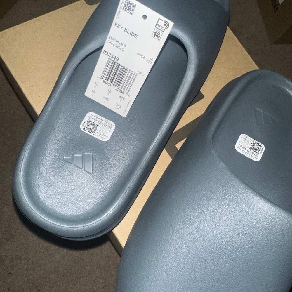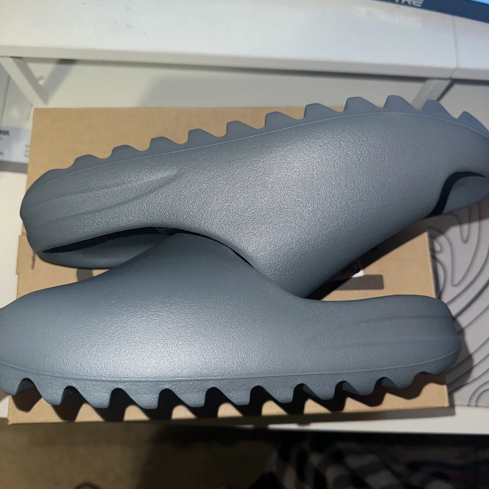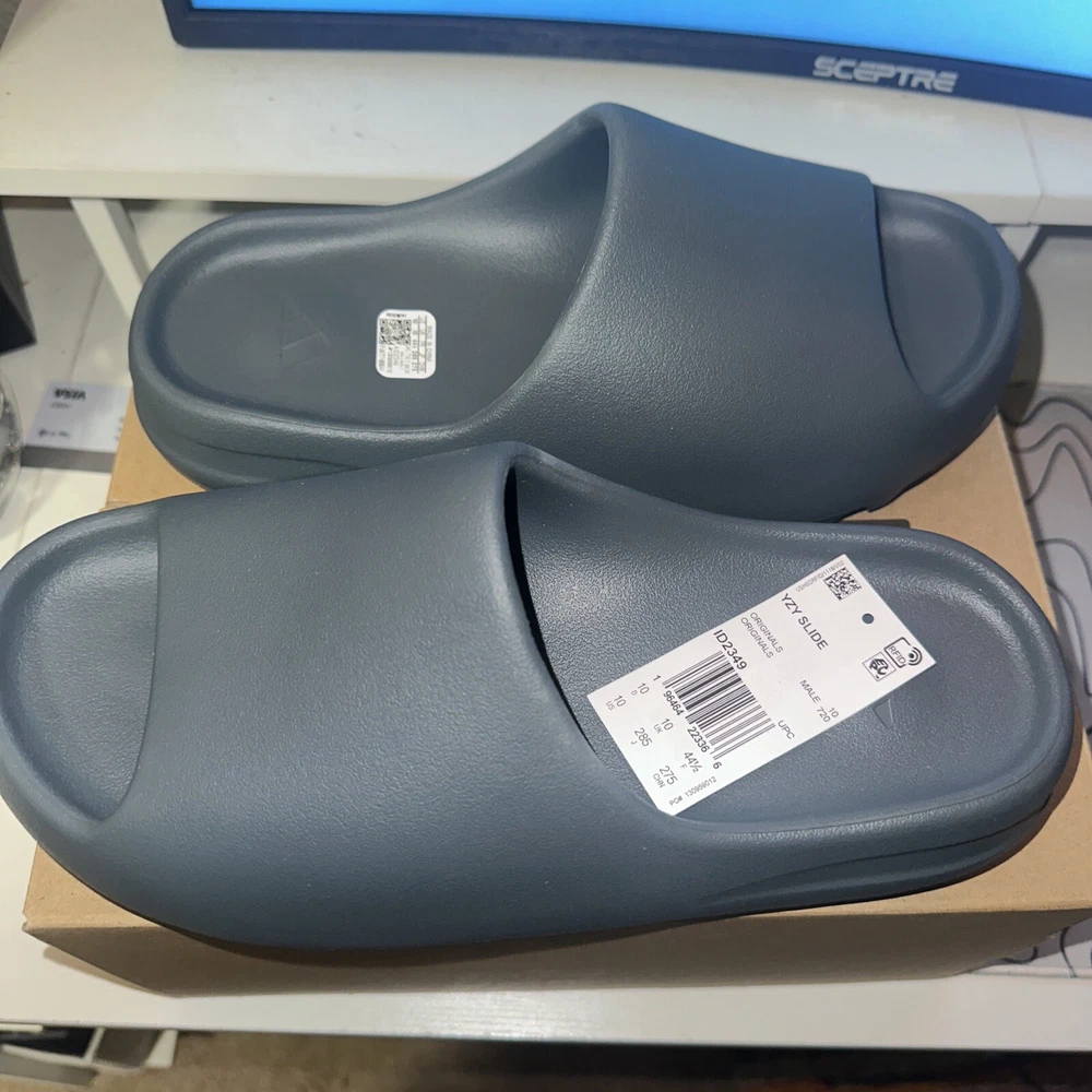 This is a pair of men's adidas Yeezy Slide sneakers in size 10, featuring a Slip On closure and a low-top shoe shaft style. The slides come in a stylish gray color with a solid pattern and are designed for comfort and breathability. With a rubber outsole and synthetic lining material, these shoes are suitable for various activities like gym training, walking, or casual wear. The adidas Yeezy Slide Slate Marine 2023 (ID2349) is part of the adidas Yeezy product line and carries a marine-themed design.