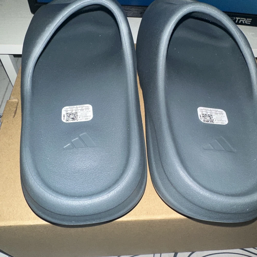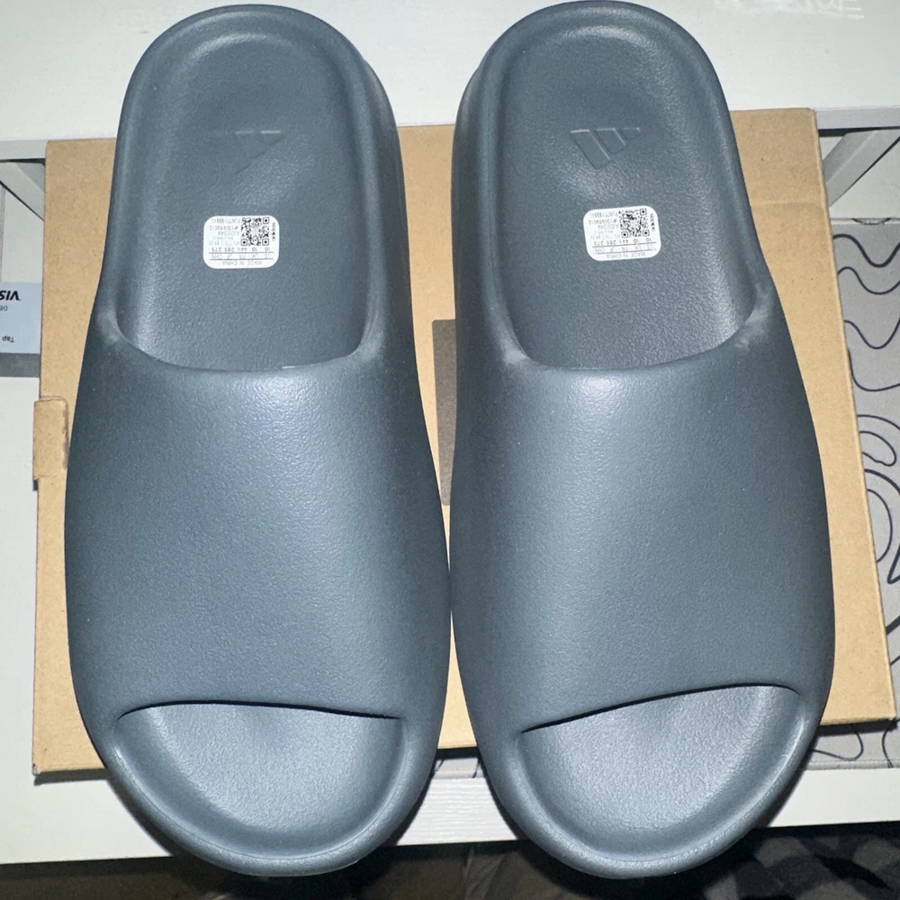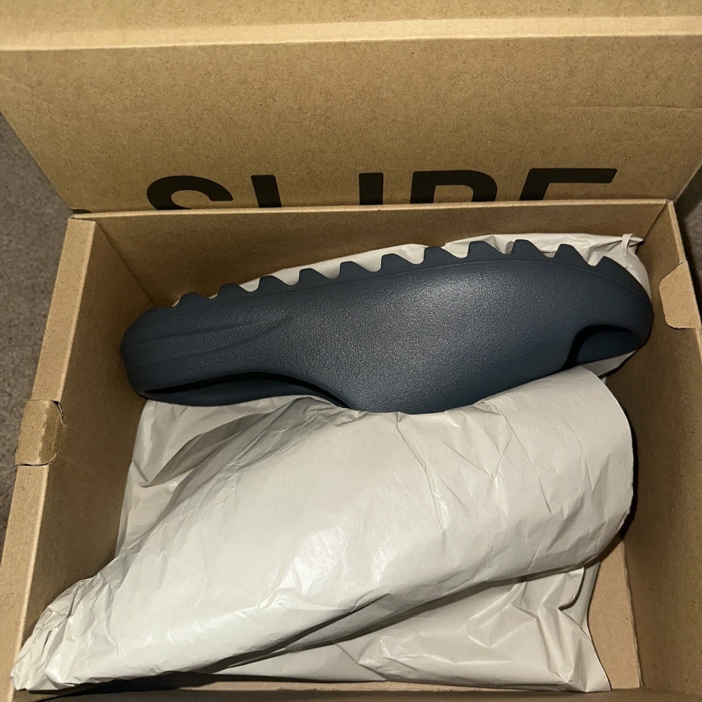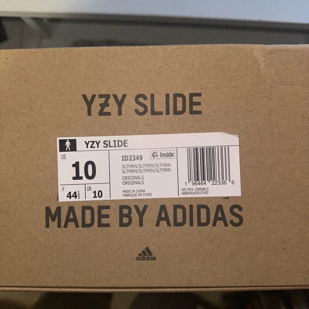 This is a pair of men's adidas Yeezy Slide sneakers in size 10, featuring a Slip On closure and a low-top shoe shaft style. The slides come in a stylish gray color with a solid pattern and are designed for comfort and breathability. With a rubber outsole and synthetic lining material, these shoes are suitable for various activities like gym training, walking, or casual wear. The adidas Yeezy Slide Slate Marine 2023 (ID2349) is part of the adidas Yeezy product line and carries a marine-themed design.