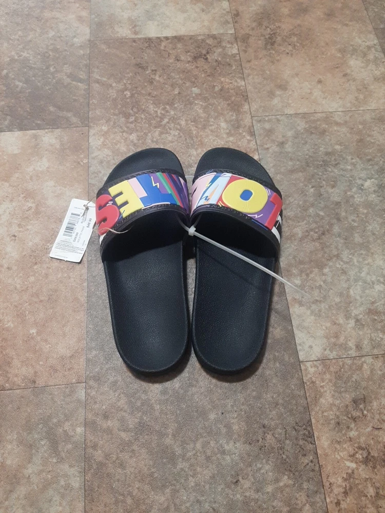 Elevate your style and comfort with this limited edition bundle of 3 pairs of men's slides, size 10. The striped pattern and multicolor design make these sandals perfect for any occasion, whether it's for travel, activewear, party/cocktail, casual, formal, workwear, or business. The cushioned, lightweight, and adjustable features of these slides make them perfect for any season, including winter, summer, fall, and spring. The outsole material is made of fabric and the insole material is made of rubber. These slides are vintage and belong to the Under Armour and Adidas product lines. The North Face character and the Under Armour theme add to the style of these slides. Get ready to slip into comfort with these stylish slides that are perfect for any occasion.