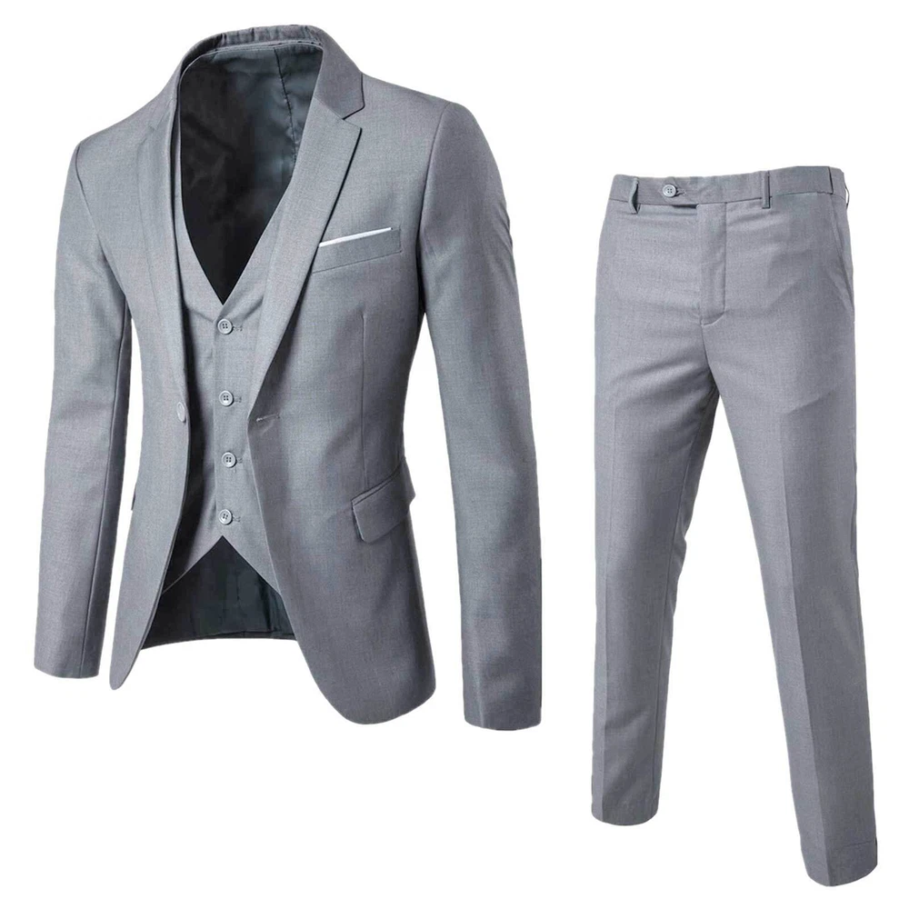 This 3-piece suit is a game-changer! The slim fit looks sharp and modern, perfect for weddings or office wear. The fabric feels premium—breathable yet structured—and the stitching is flawless. The vest adds a polished touch, and the pants fit comfortably without needing alterations. Great value for such a stylish, versatile set that elevates any formal occasion. Highly recommend!