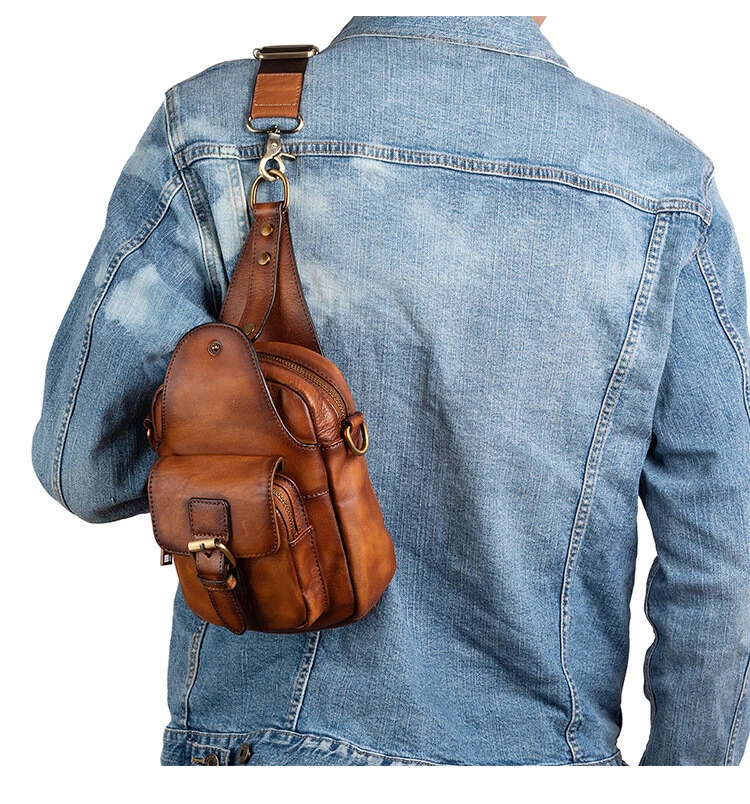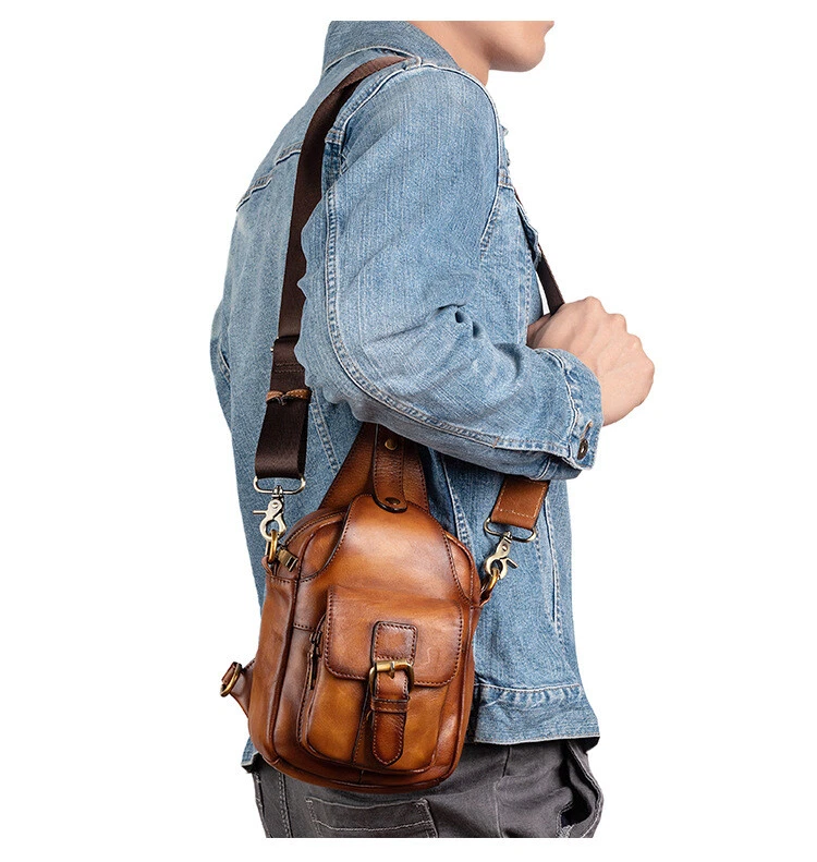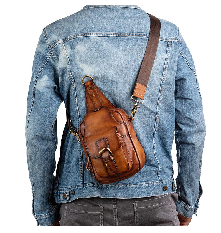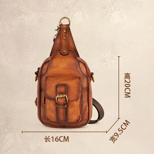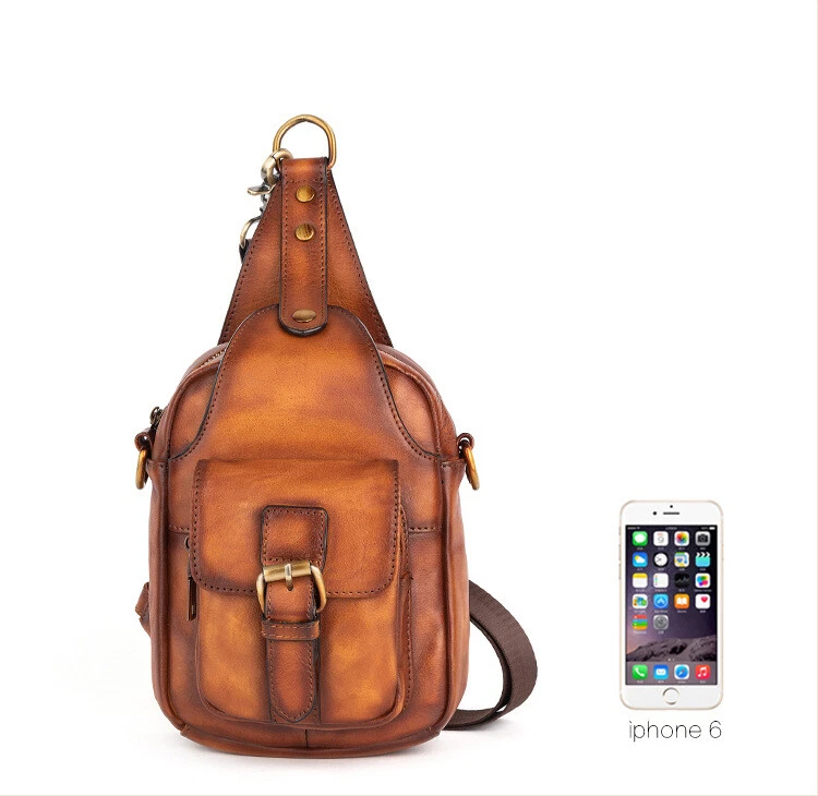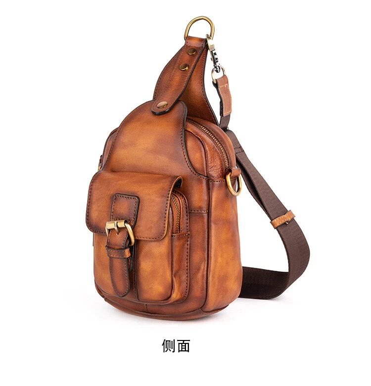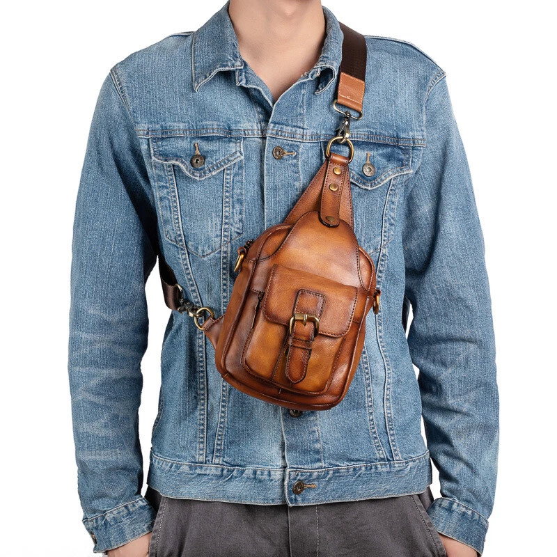 Men's Sling Backpack, 100% Cowhide Leather Vintage Chest Bag Crossbody Daypack