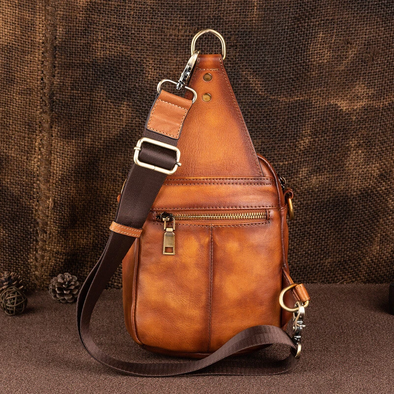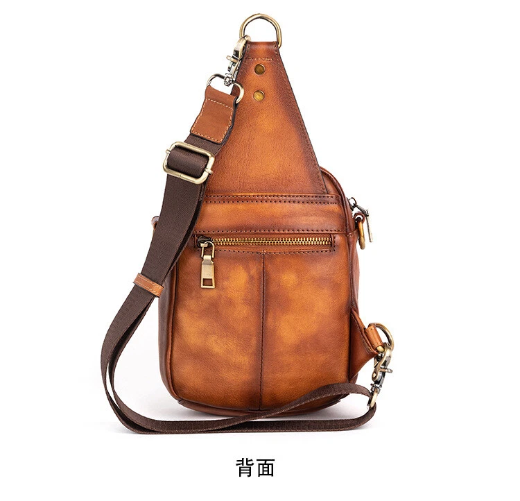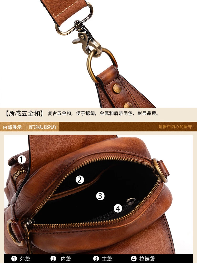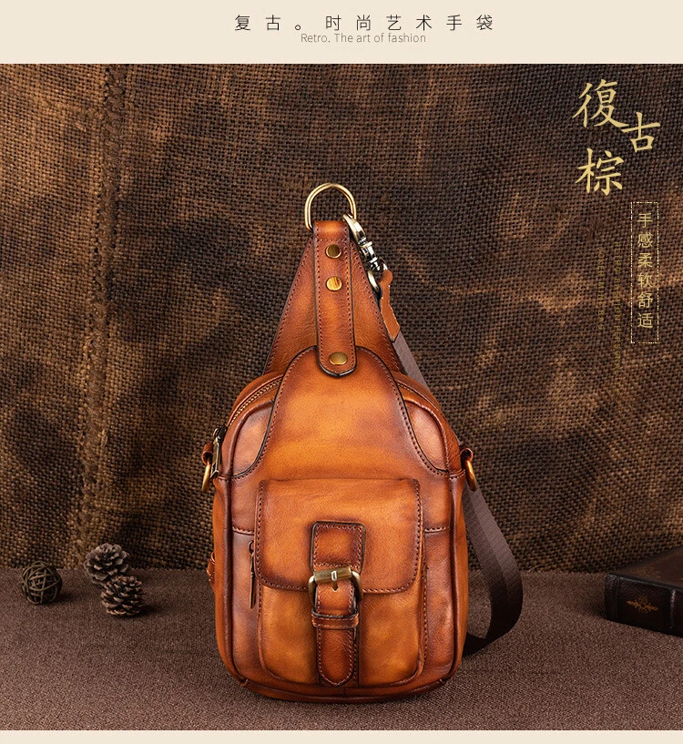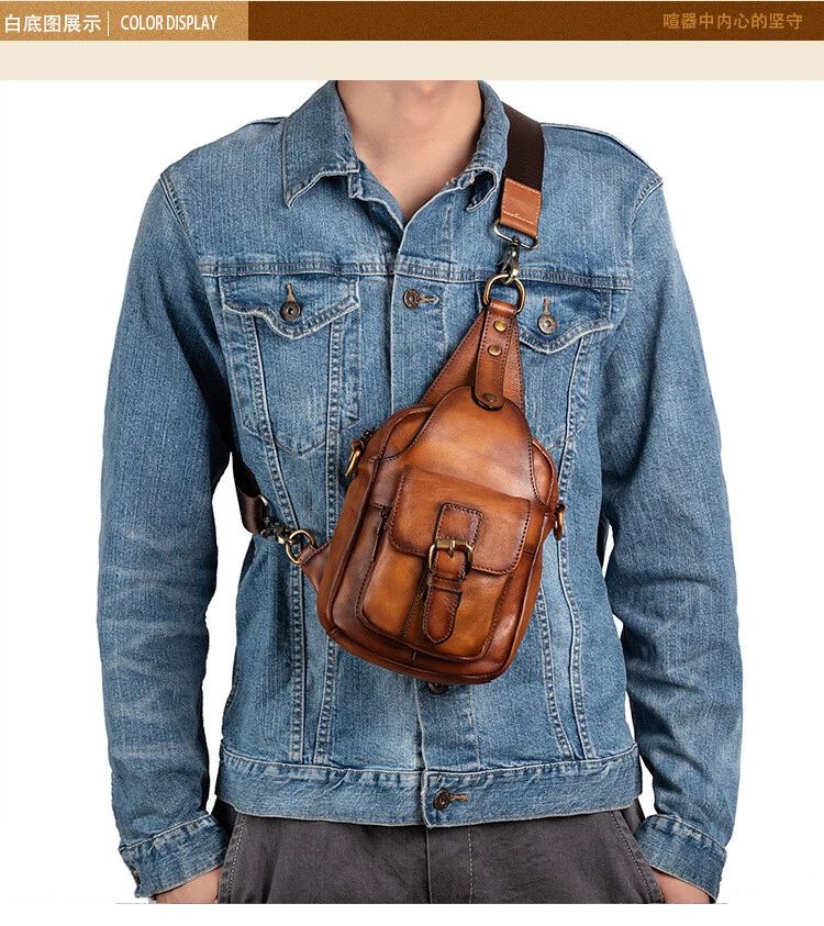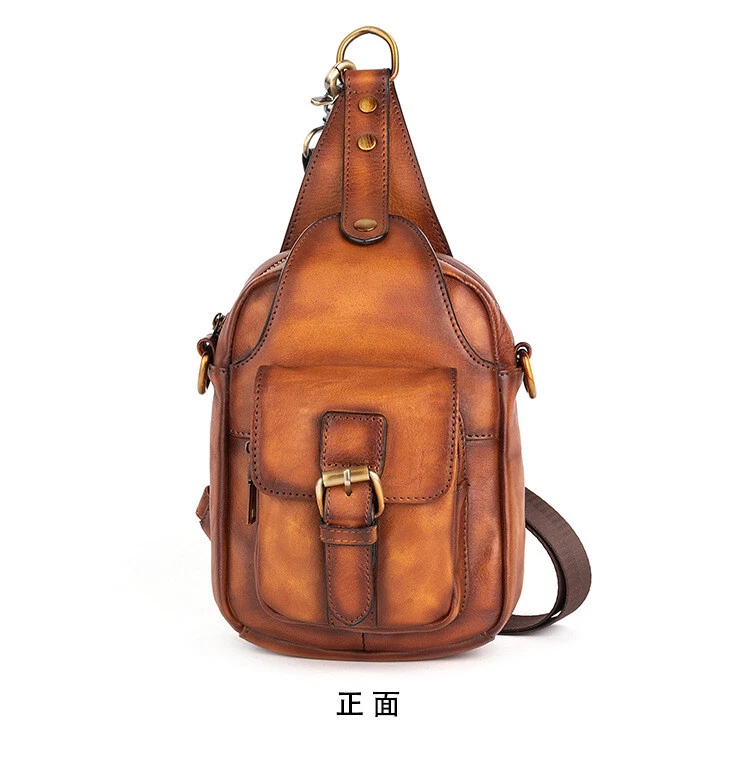 Men's Sling Backpack, 100% Cowhide Leather Vintage Chest Bag Crossbody Daypack