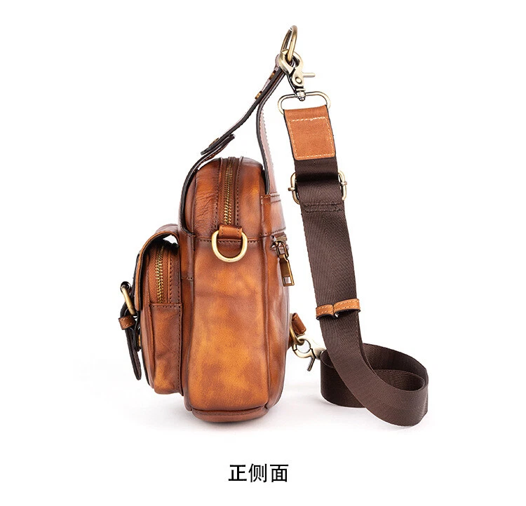 Style: Crossbody Bag Depth: 3.74 in Hardware Material: Stainless Steel Material: Leather Lining Material: Polyester Size: Small Bag Height: 7.87 in Pattern: Solid Bag Width: 6.29 in Closure: Zip Features: Adjustable Strap, Cross-Body Strap, Detachable Strap Vintage: Yes Brand: Unbranded Country/Region of Manufacture: China Fabric Type: Cowhide leather Handle Style: Crossbody Strap UPC: Does not apply Theme: Outdoor, Sports gtin13: Does not apply Occasion: Casual, Travel Color: Brown Department: Men